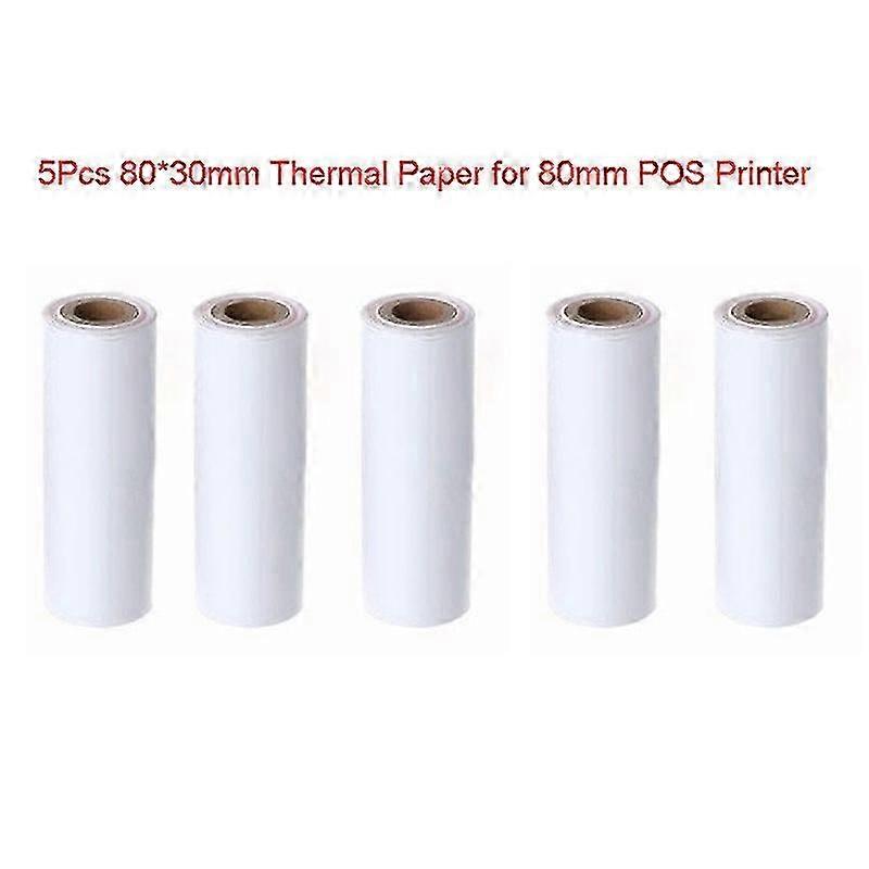 5 rolls of 80x30 mm thermal receipt paper, suitable for 80 mm mobile POS thermal printers.