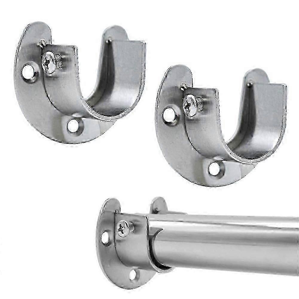 Stainless steel wardrobe rod bracket set, U-shaped open flange set, with screws, suitable for shower curtains.