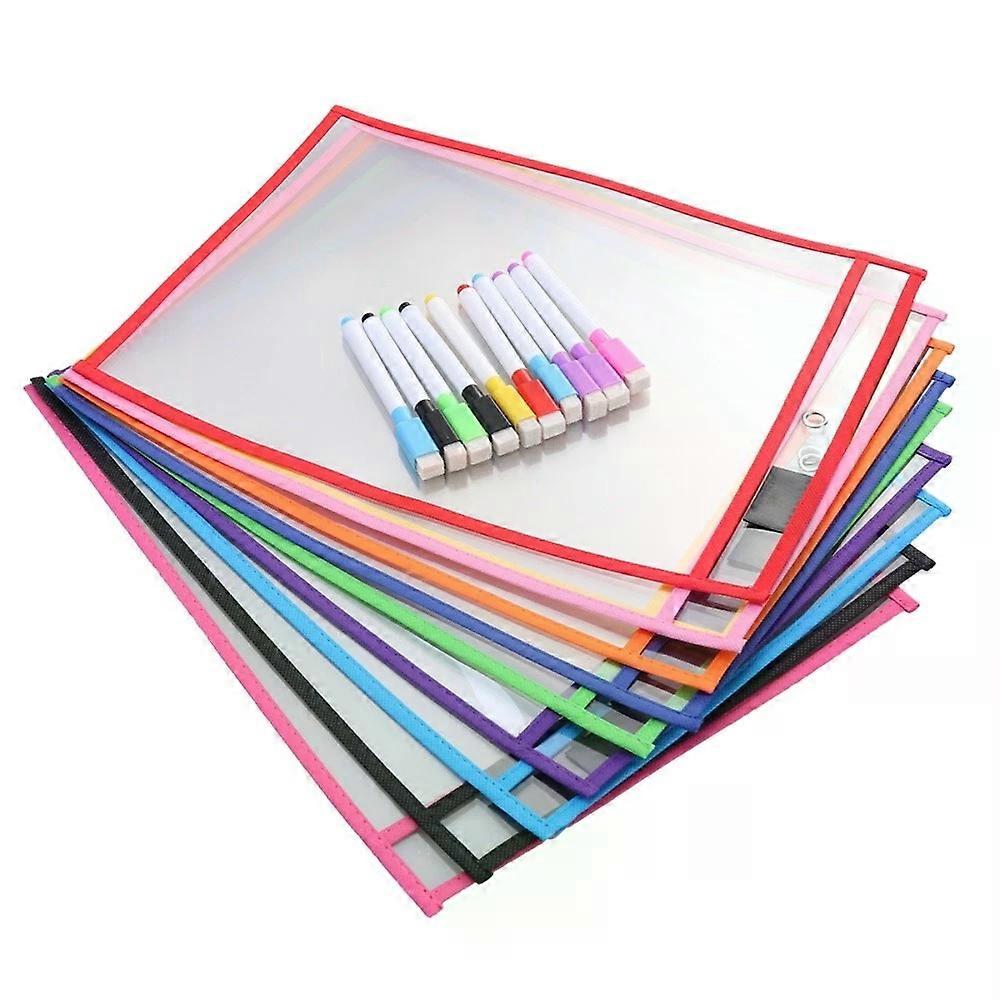 Reusable Storage Bag, Transparent PVC Dry Erase for Office/Kids, Reusable Washable, 10pcs with Pens/Caps/Forms