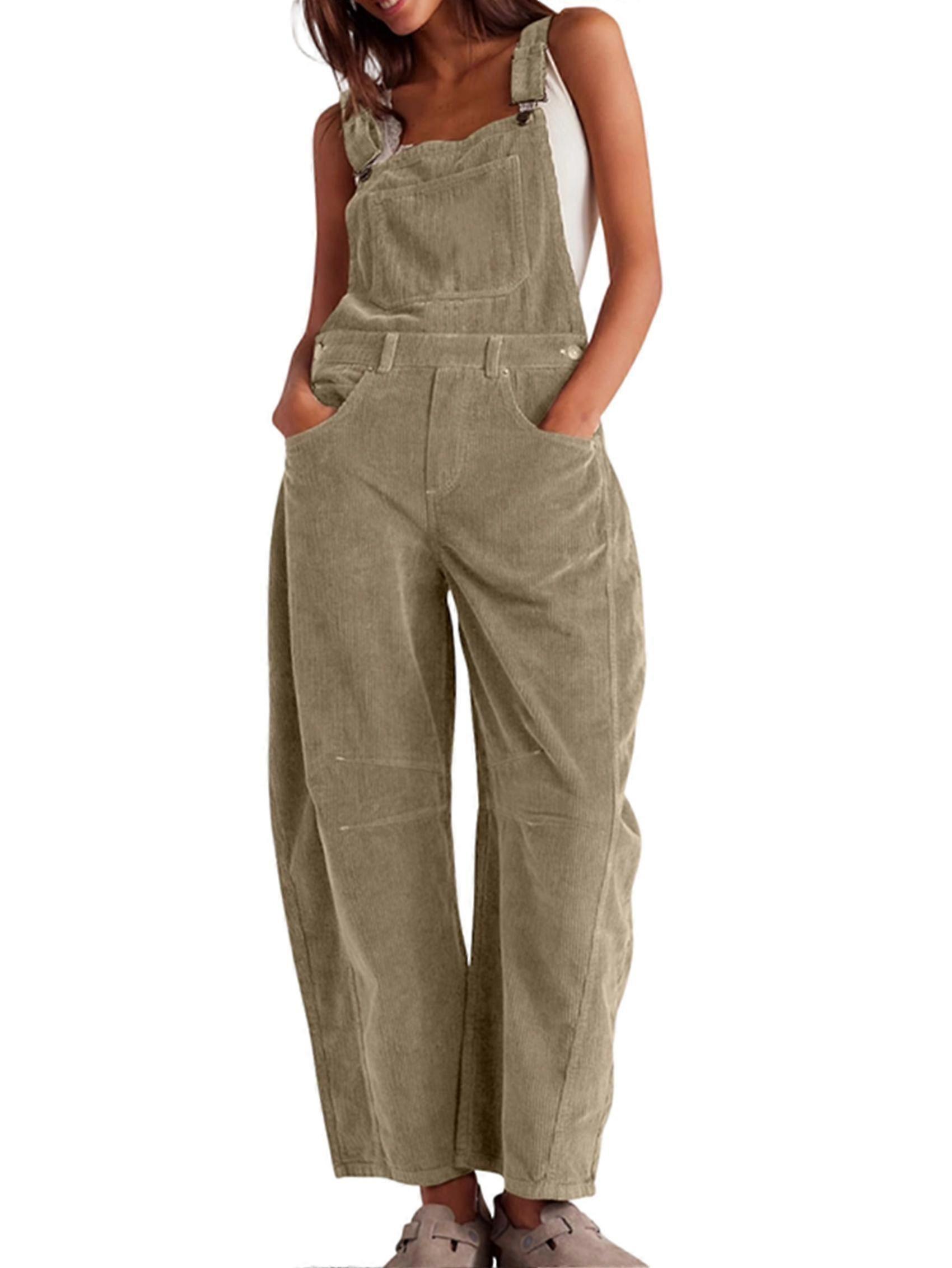 Corduroy Overalls for Women Wide Leg Bib Pants Adjustable Romper Jumpsuit with Pockets Pink-mc