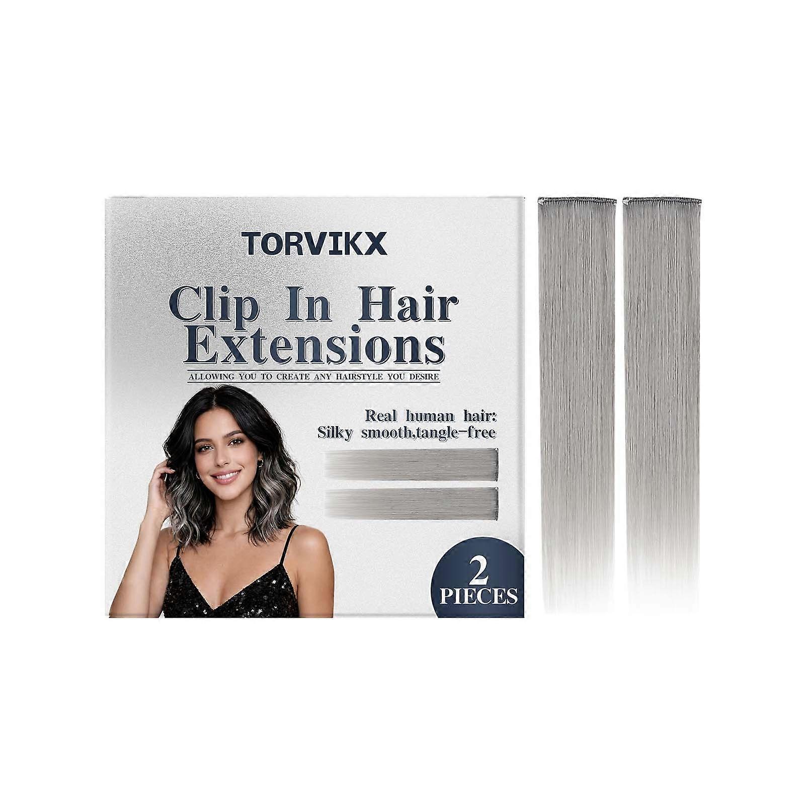Silver-Gray Clip-In Hair Extensions, Gentle Everyday Volumizing Style, Portable To Wear, 22-Inch Hair For Party Highlights, Suitable For Female Cospla