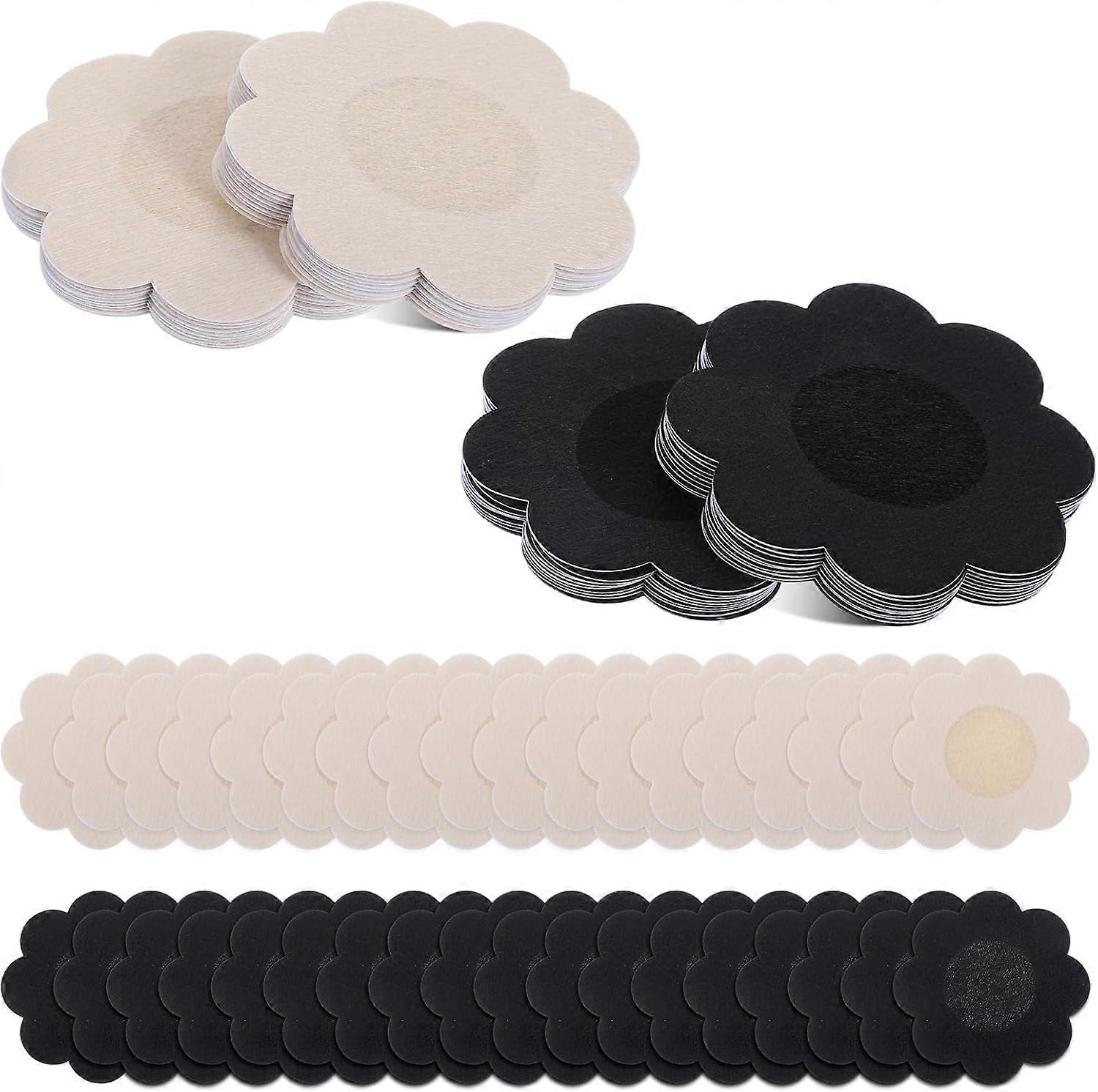 80 Pcs Nipple Covers for Women, Disposable Breast Pasties, Self-adhesive Invisible Nipple Stickers, Invisible Beige Black Breast Covers, Petal Breast
