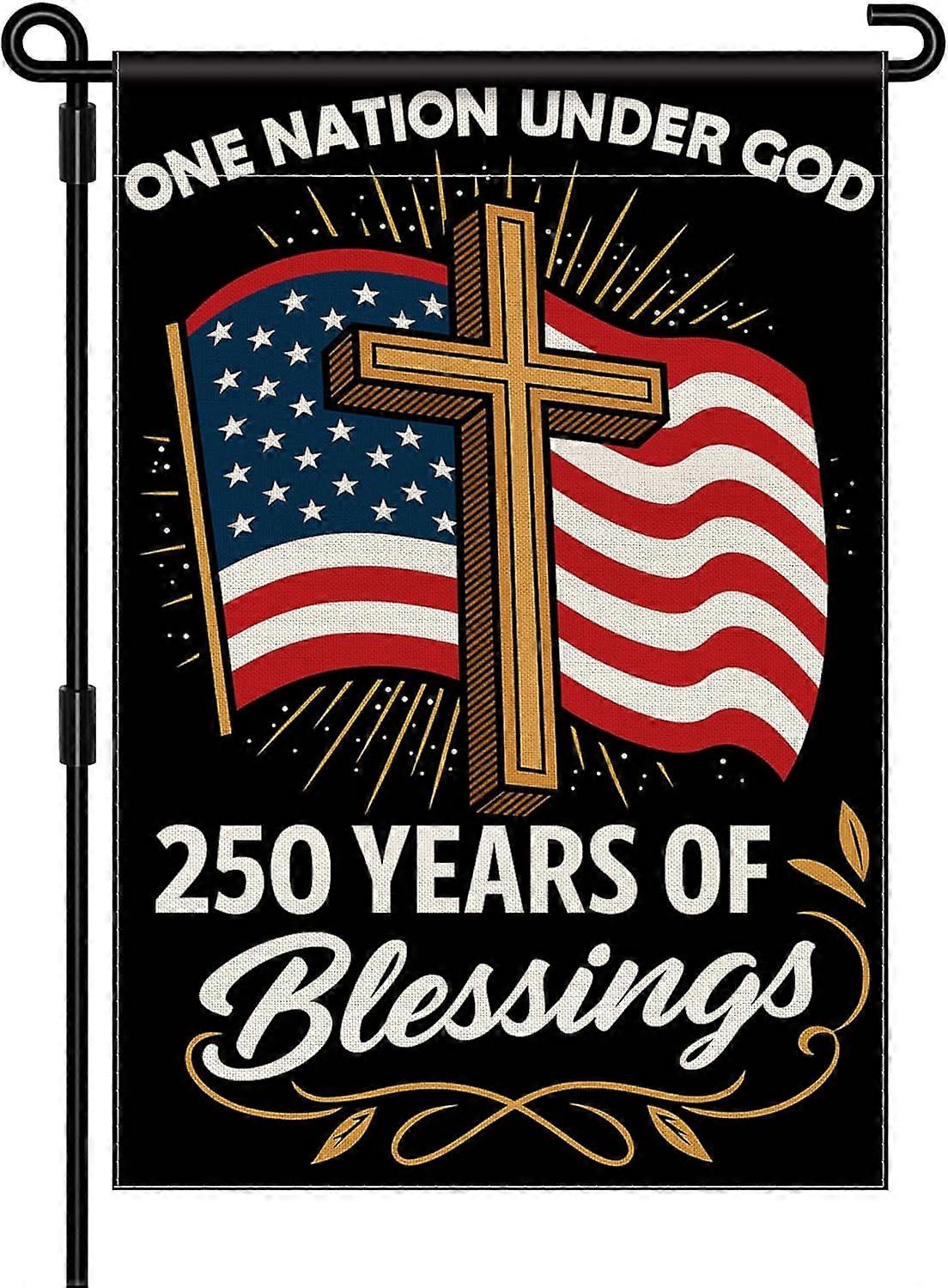 Blessings America 250 Garden Flag, America 250th Anniversary Flag USA Patriotic Banner 250 Year One Nation Under God 4th of July Double-Sided Waterpr