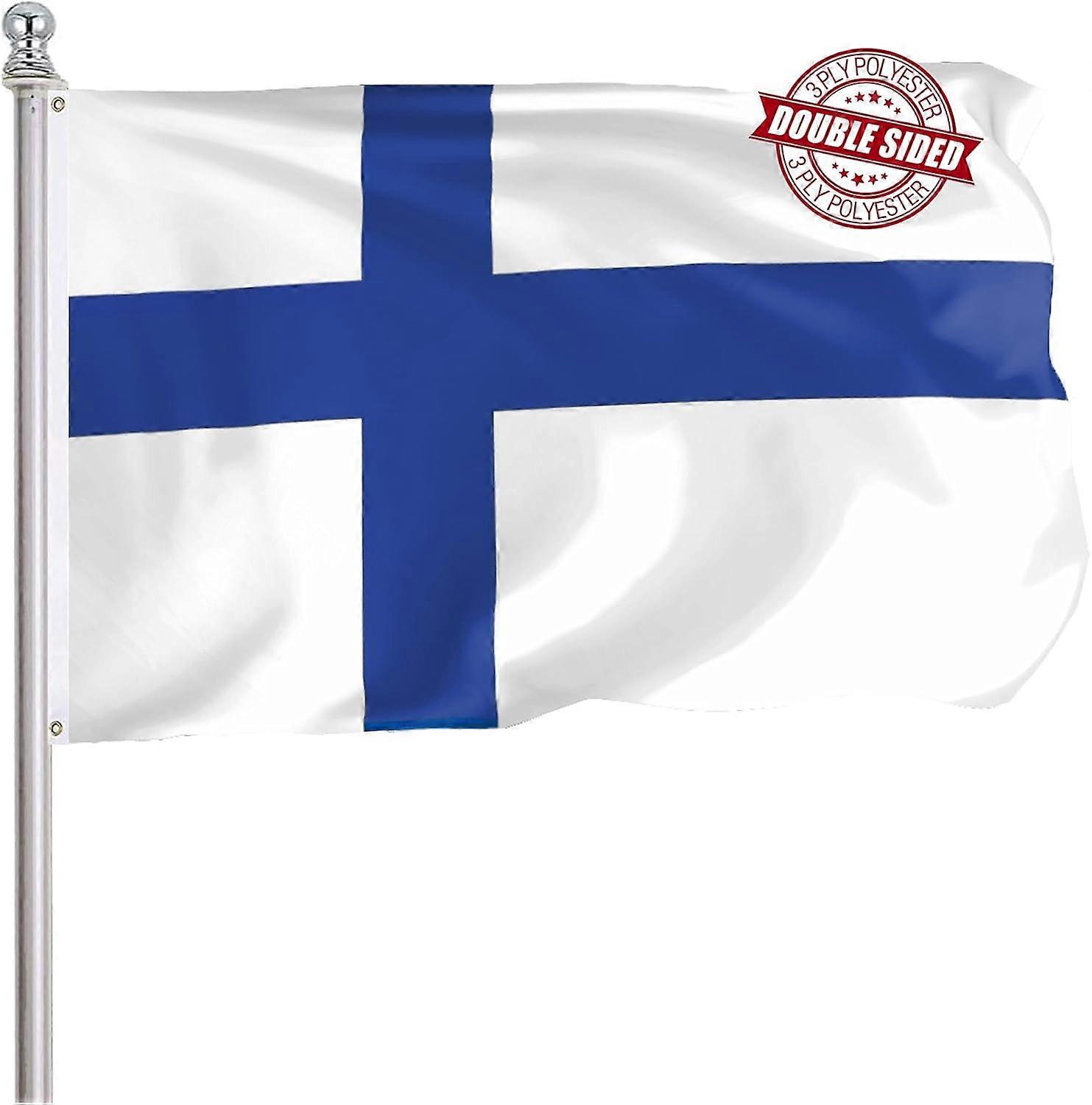 Finland Finnish Flag 3x5 Ft Outdoor, Heavy Duty 3 Ply Polyster Finn National Flags, Double Sided Vibrant Color Finland Country Flag Double Stitched B