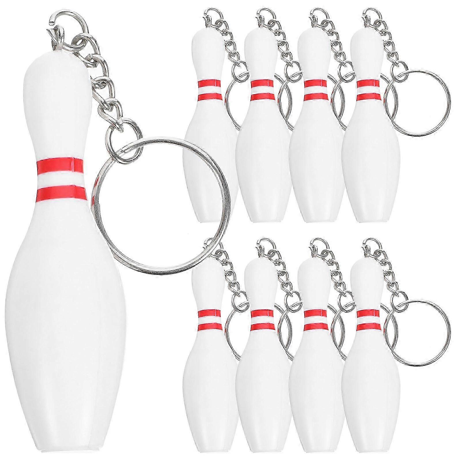 Bowling Keychain Set for Sports Fans, 9Pcs White PVC Ornaments