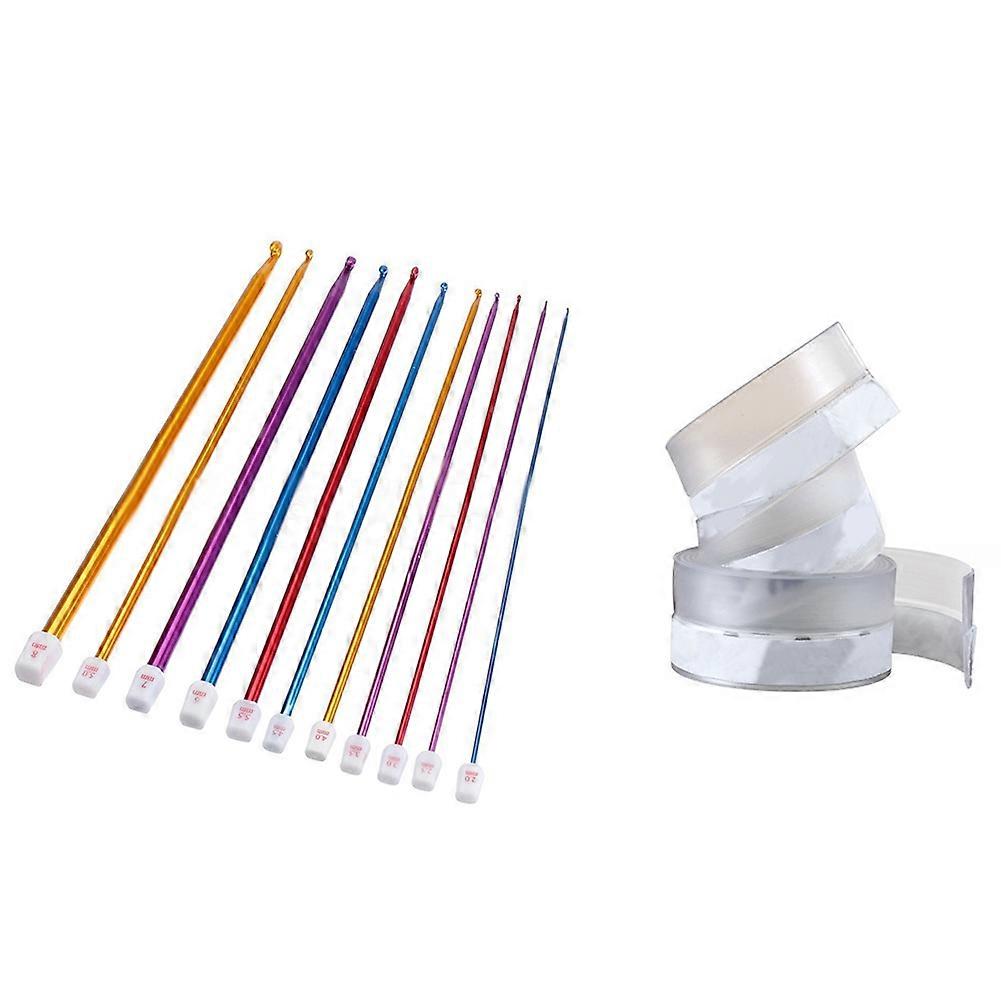 11Pcs 27cm Multicolour Afghan Crochet Hook Knit Needles 2-8mm & 1x Floor Stickers Transparent Rubber Sealing Strip