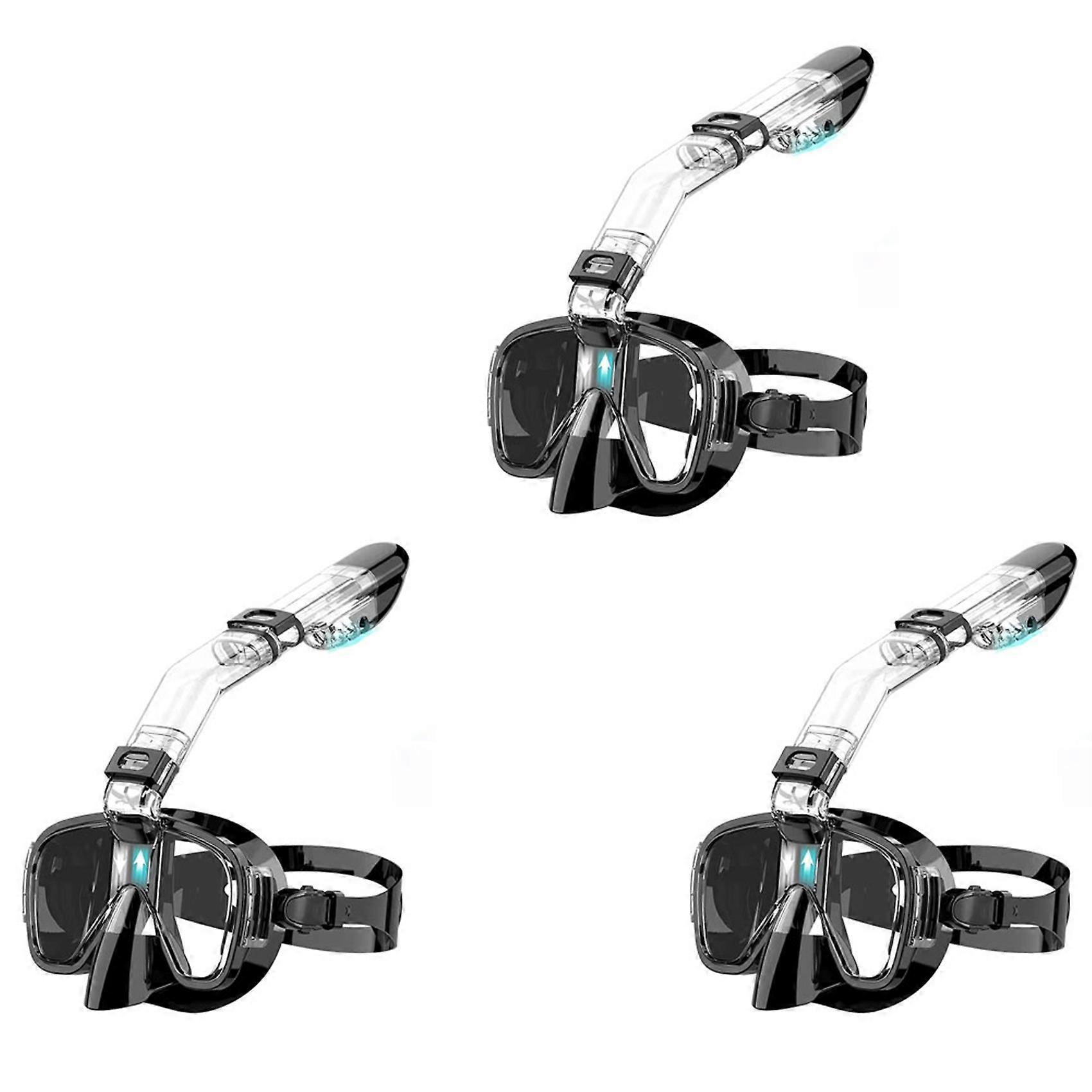 3X Snorkel Mask Foldable Diving Mask Set with Dry Top System and Camera Mount, Anti-Fog Snorkeling Gear-Black