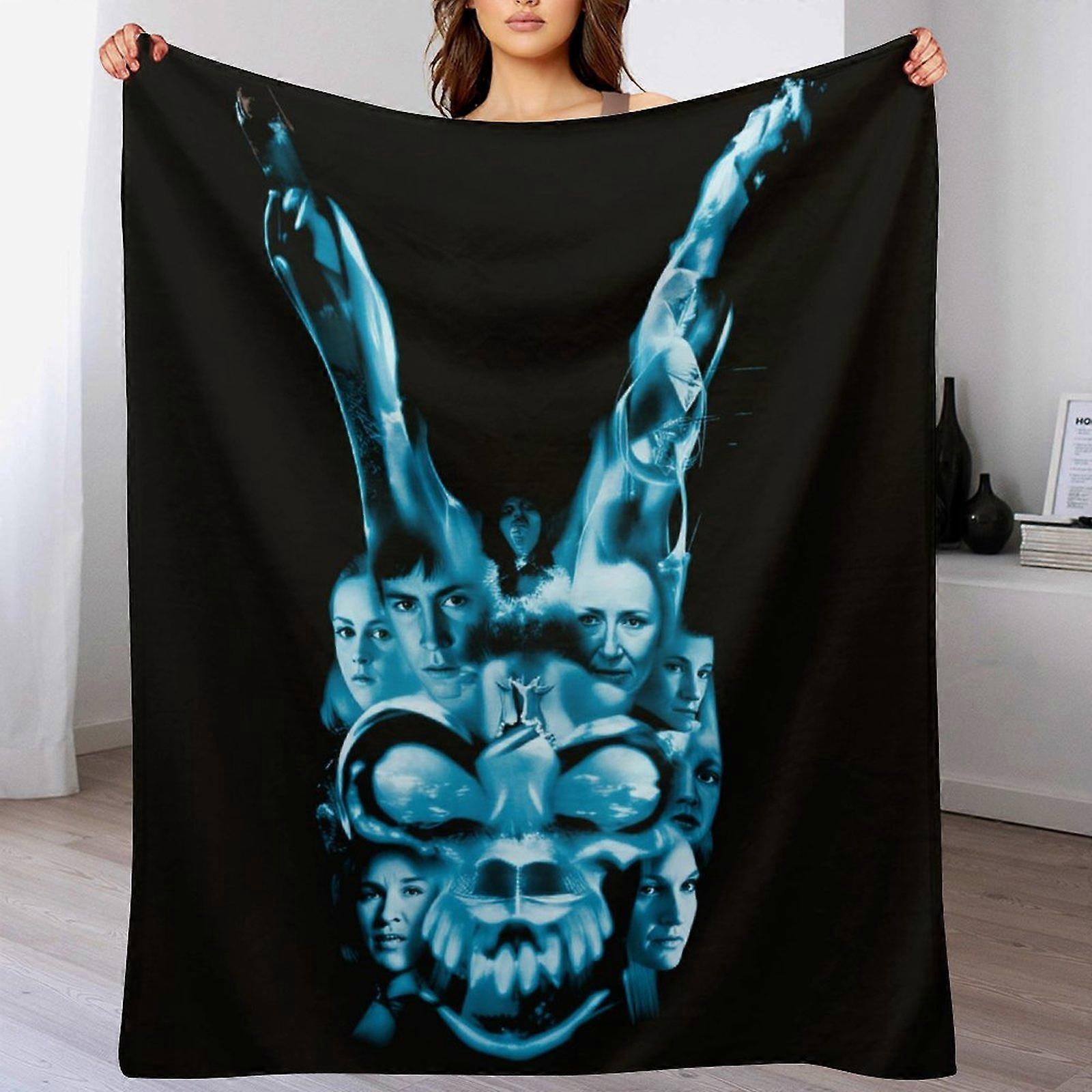Blue Rabbit & Group Portrait Print Flannel Blanket - Soft Warm Throw | Mysterious Decor for Alternative Fans