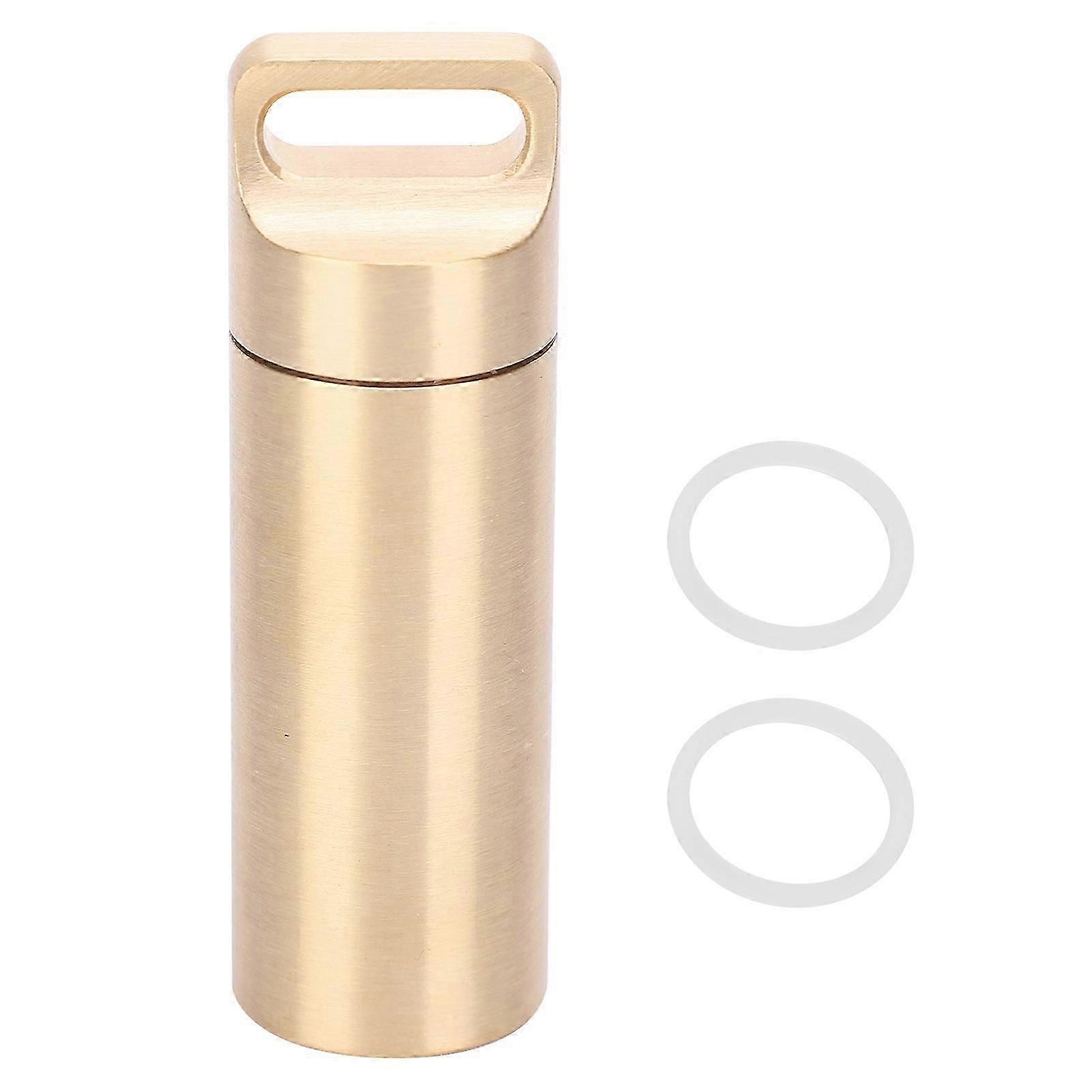 Portable copper capsule case stand waterproof tablet storage box, suitable for travel and outdoor use.