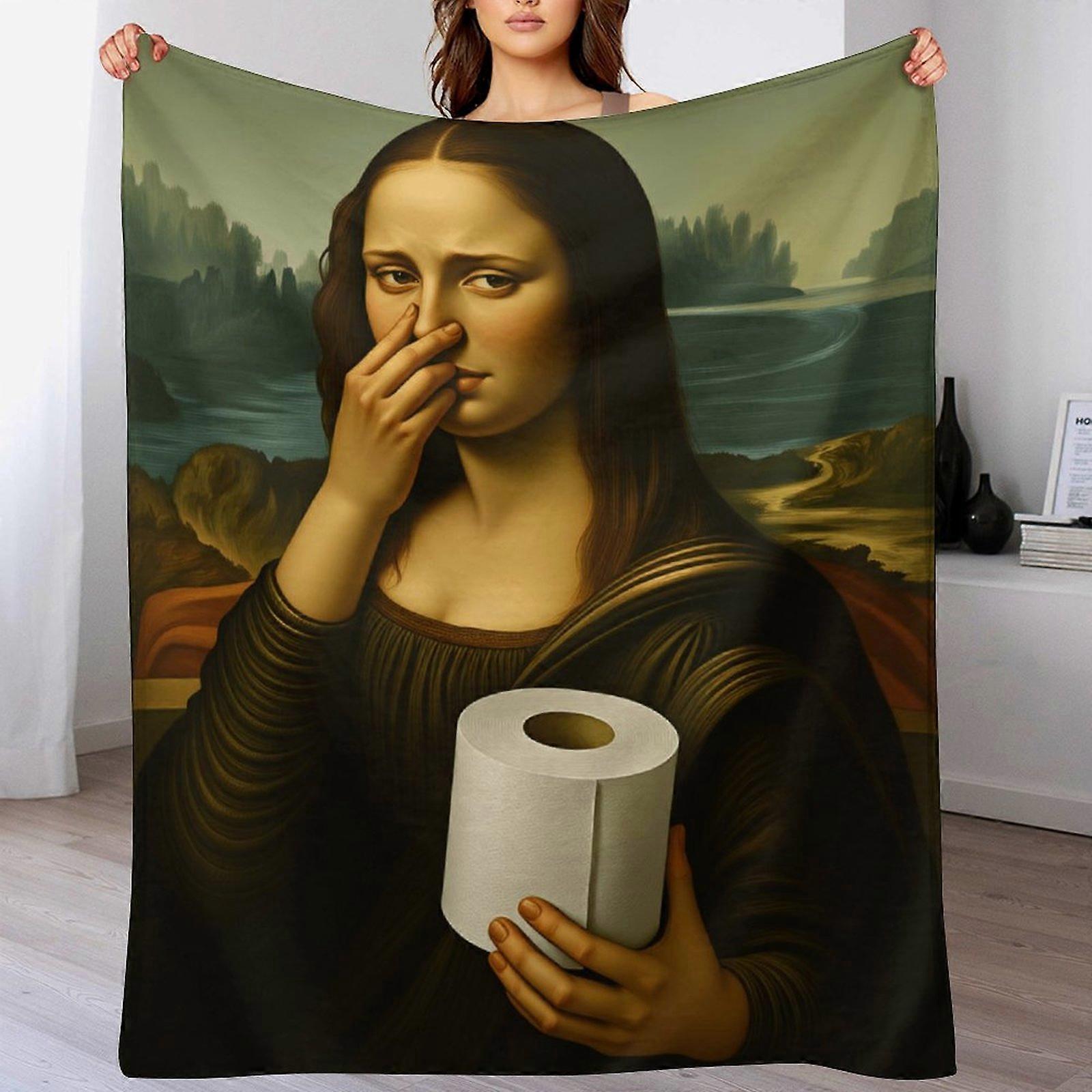 Mona Lisa With Toilet Paper Print Flannel Blanket - Soft Warm Throw | Funny Art Gift for Bathroom Decor