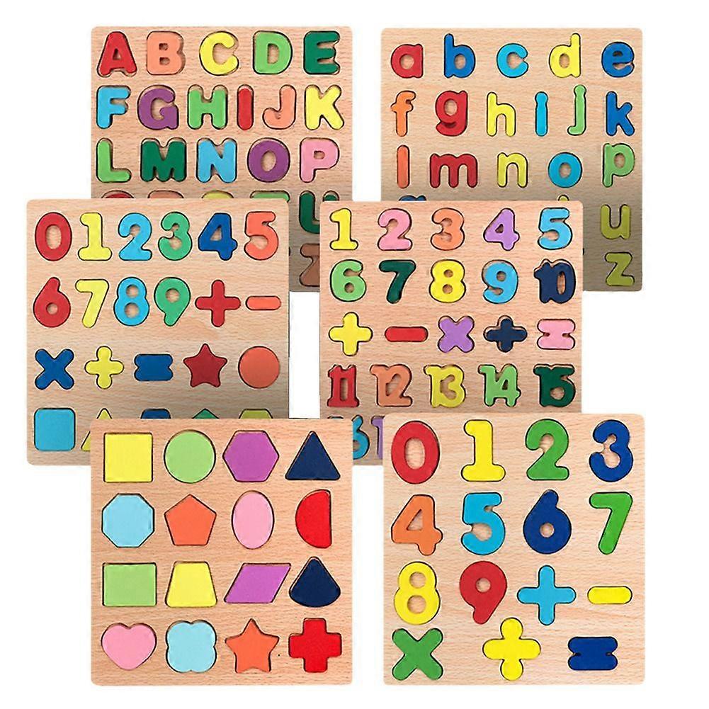 Wooden Puzzles for Children, Wooden Numbers, Letters, Geometric Figures, Building Blocks, Hand Grab Board Toys