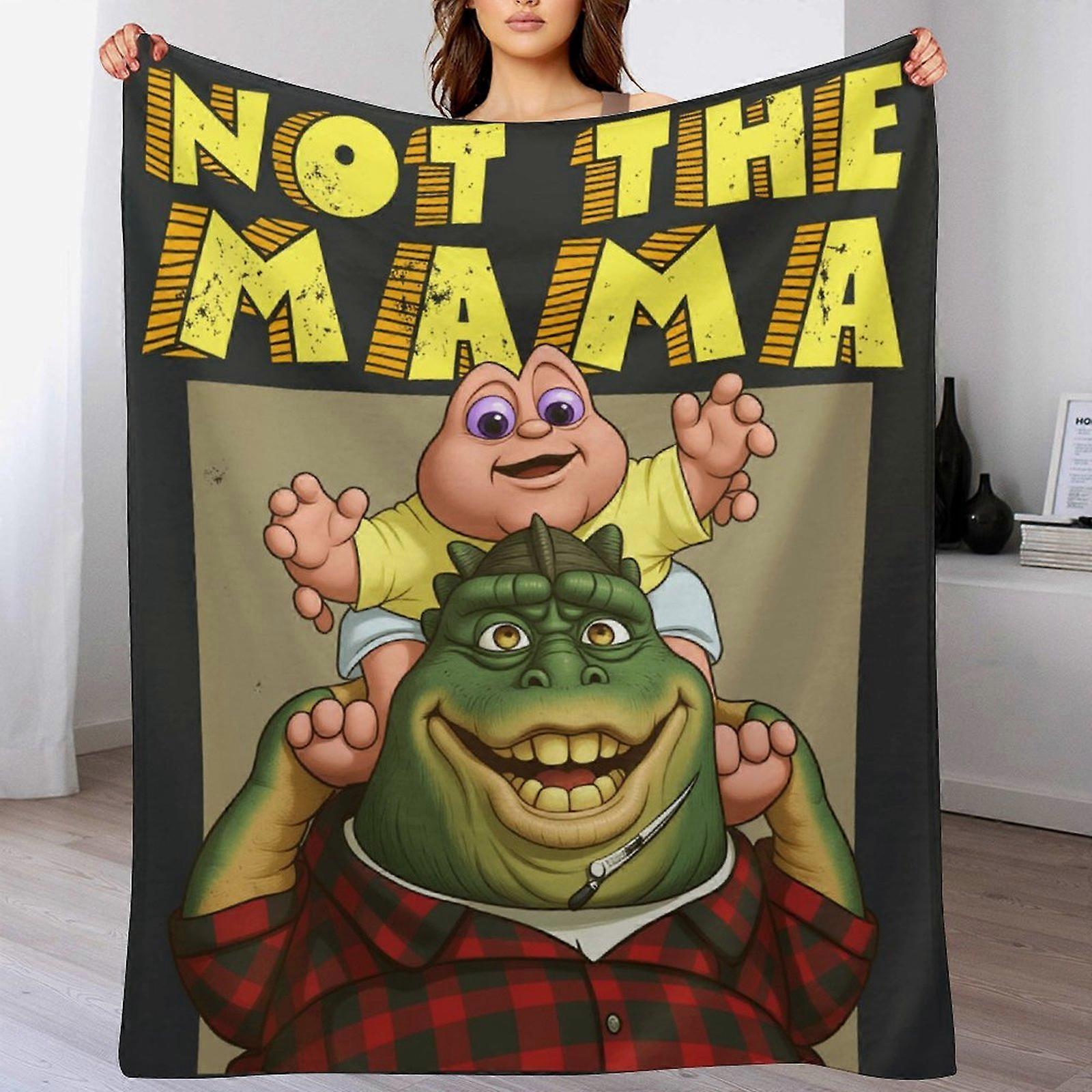 "Not the Mama" Dinosaur Family Print Flannel Blanket - Soft Warm Throw | Nostalgic Gift for 90s TV Fans