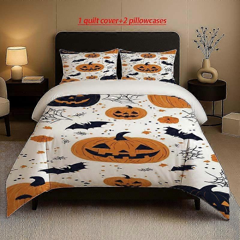 Halloween Pumpkin Lantern Bat And Spider Web Pattern Three-Piece Set Soft And Comfortable Bedding Set Available in All Seasons