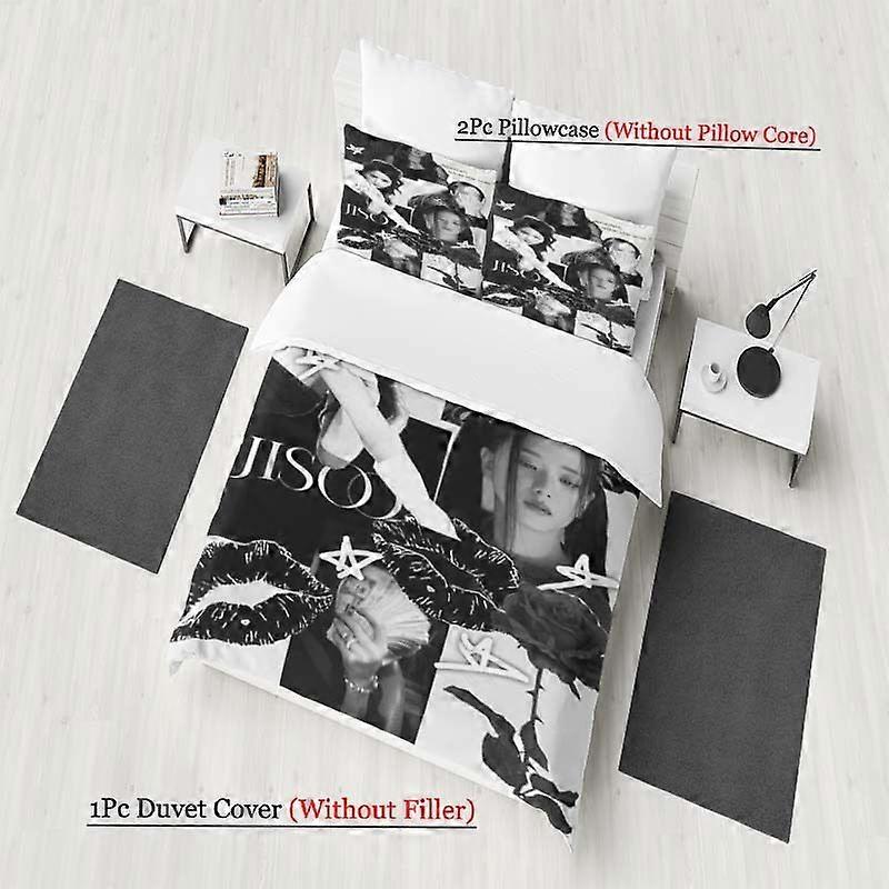 Jisoo Black And White Collage Art Pattern Three-Piece Set Soft And Comfortable bedding