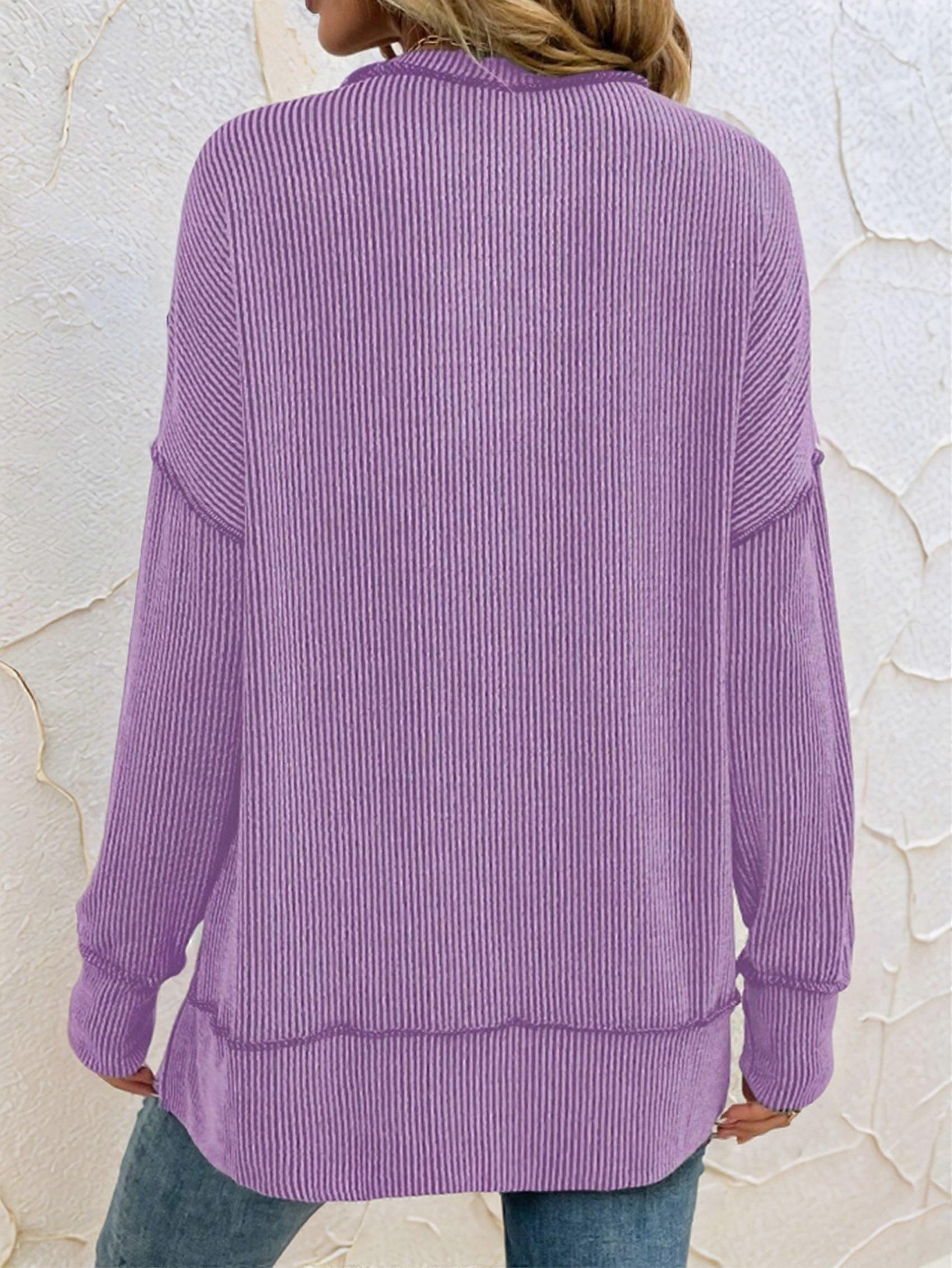 Womens Long Sleeve Tops Ribbed Loose Fit Oversized Sweatshirts with Side Slit High Low Hem Fall Outfits Purple XXL