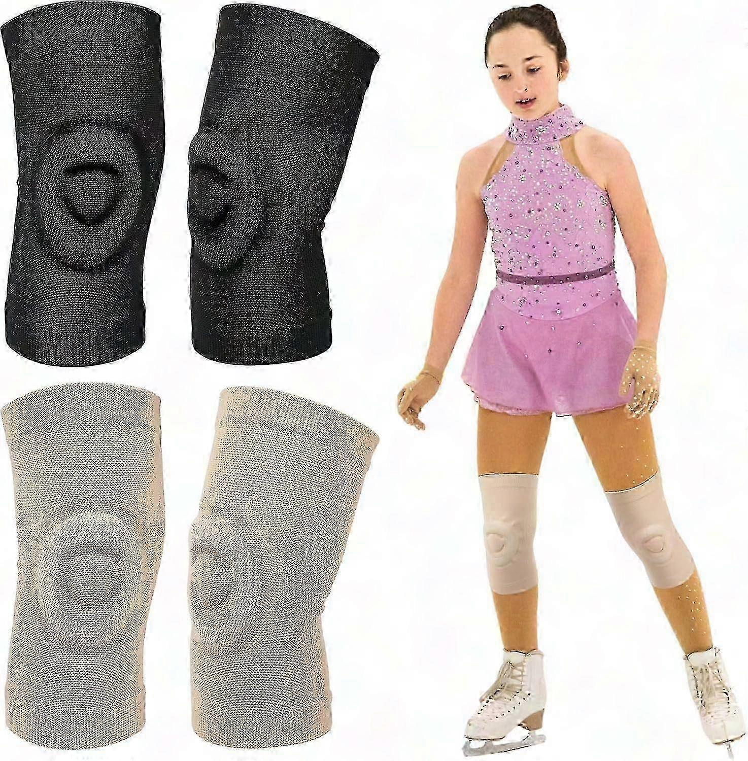 Convenient Package: you will receive 2 pairs of figure skating knee pads in 2 colors, including beige and black, no need to worry about losing your pads, which ensures that you have a backup pair ready in case you lose one; The pads are large, fitting most men and women to use and replaceQuality Material: the figure skating kneepads are made from silicone and spandex, providing an impressive combination of durability and comfort; With this fitting material, your volleyball kneepads will stay snug and in place, keeping your knees secure and protected during your most rigorous activities, stabilizing and support the patella of the knee, which also can help to reduce the impact and friction to the kneecaps when training or stretching on the floorPractical Design for Comfort: the knee sleeve is designed with special outline, including a central patella pad and a lateral ring pad to support the patella, allowing you to fit snugly and easily; It has high elasticity and the non slip silicone coating prevents knee sleeve from rolling, sliding or slipping during activity, ensuring comfort throughout the dayWide Range of Occasions: the knee brace is not limited to just dancing figure skating gymnastic, they can be worn during other games, workouts, basketball, running, cycling, dancing, climbing, skating, football, gardening, cleaning, and other situations where knee protection is required; Be it professional or home use, the knee brace is your companionSoft and Comfortable to Wear: the knee support is breathable, can soak up sweat quickly, ideal for women, men, girls, boys, kids and youth, both aesthetic and practical; It can also be served as a gift to your friends, colleagues and families, giving them good use experiences