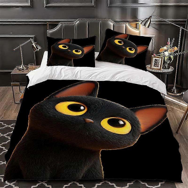 Cartoon Black Cat 53.15-103.94inch Themed Bedding Three-Piece Set Duvet Cover and Pillowcase Set