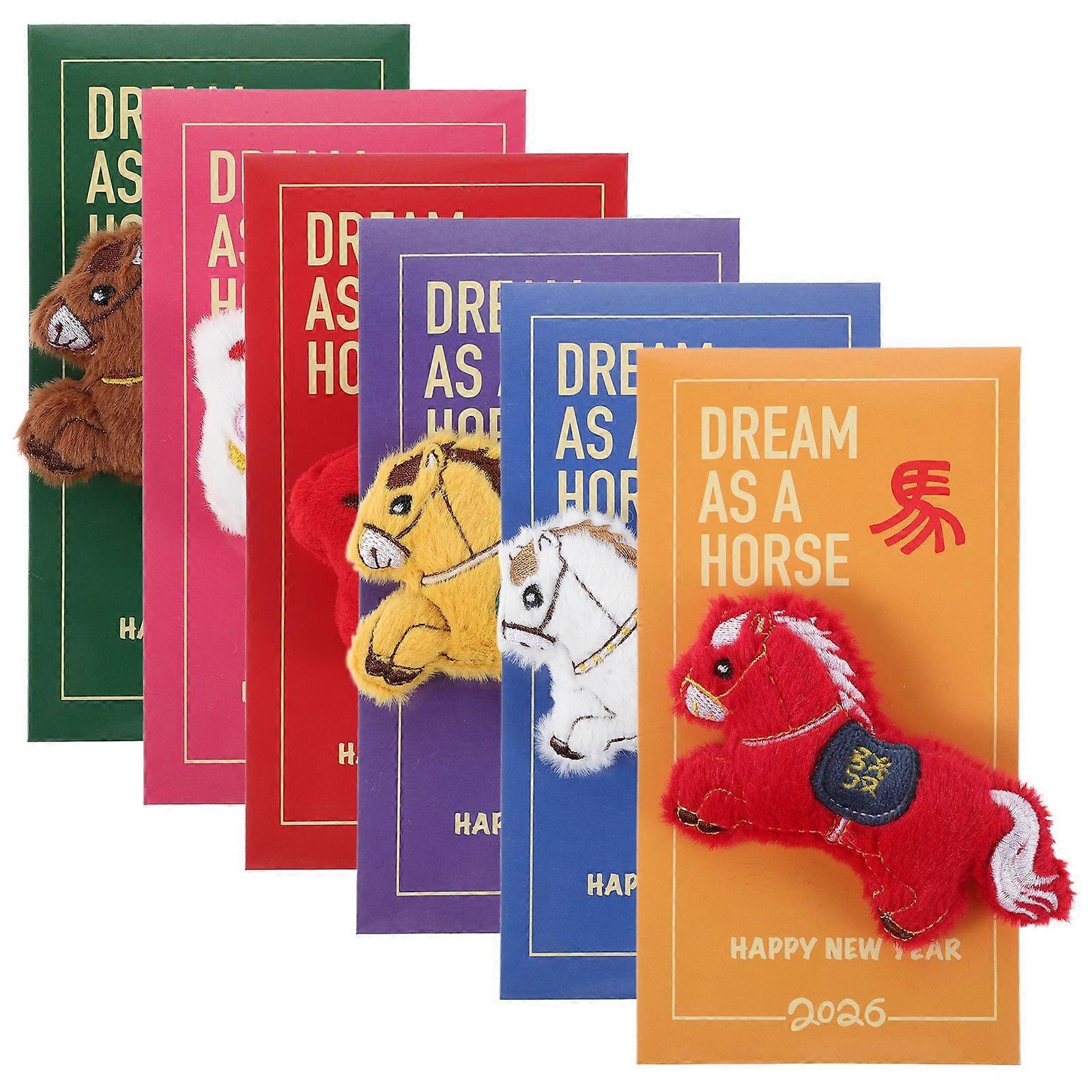 6pcs Chinese New Year Red Envelopes 2026, Lucky Money Envelope, 3D Plush Horse Embroidery Red Packet for Lunar New Year, Birthday, Spring Festival
