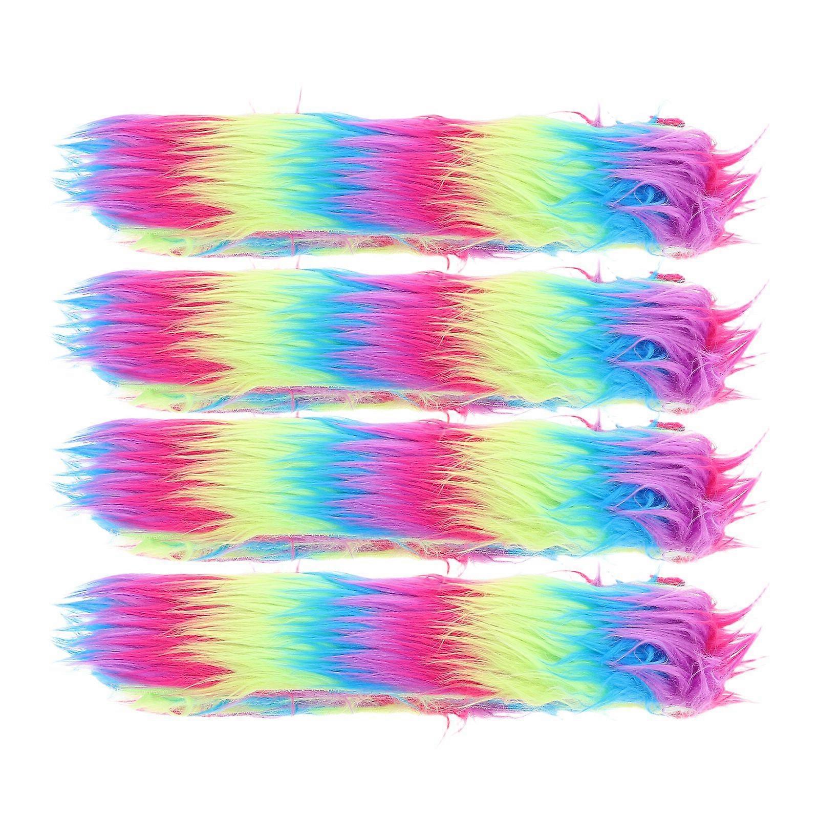 4pcs Faux Fur Shaggy Fabric: Precut Strips Craft Trim Rainbow Patches Cuts For Diy Projects Chair Gnomes Cosplay Mask Cover Seat Cushion Pad Diy Craft