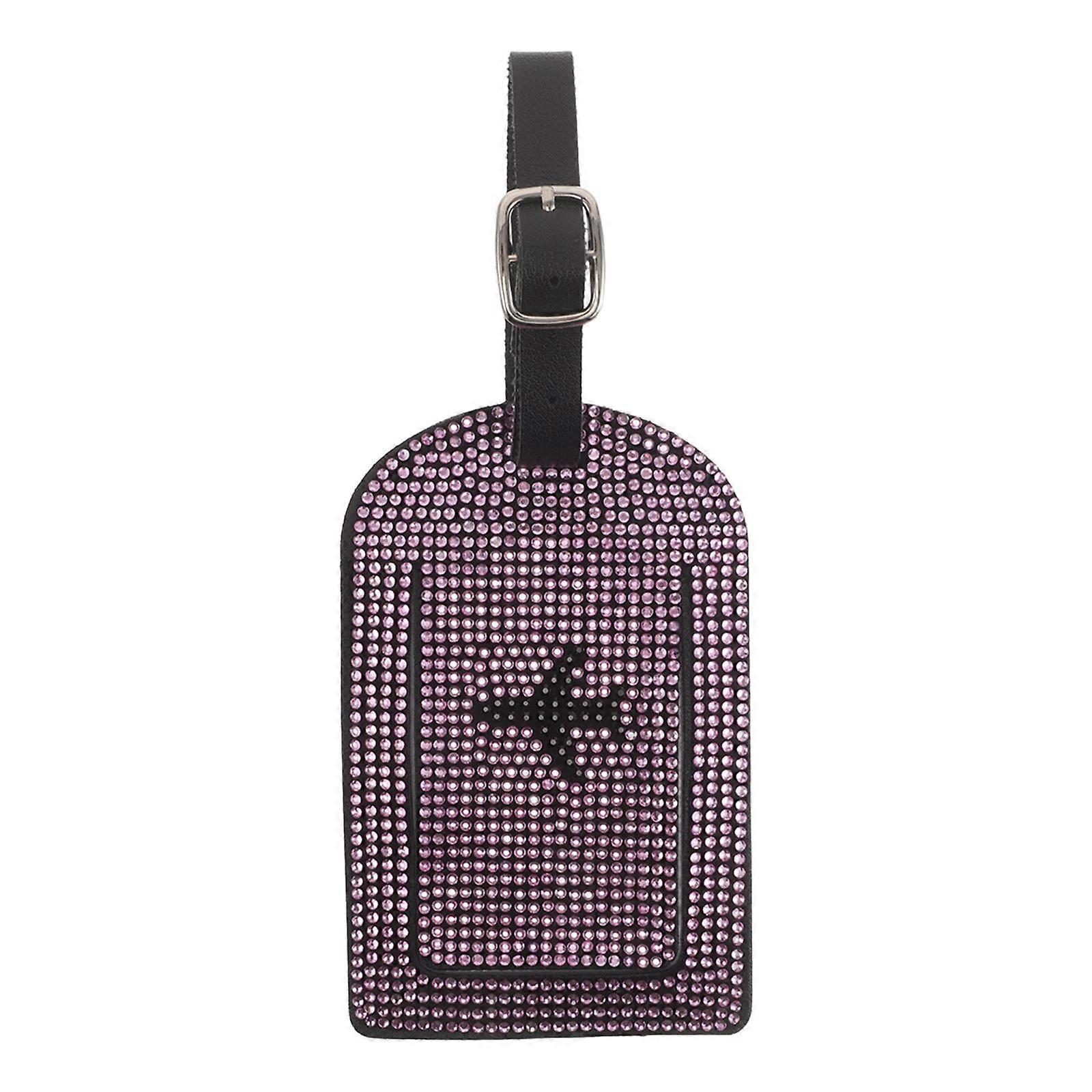 Glitter Luggage Tag for Women - Rhinestone PU Travel Tag Bling Luggage Identifiers for Suitcases Cruise Backpack Bag Pink