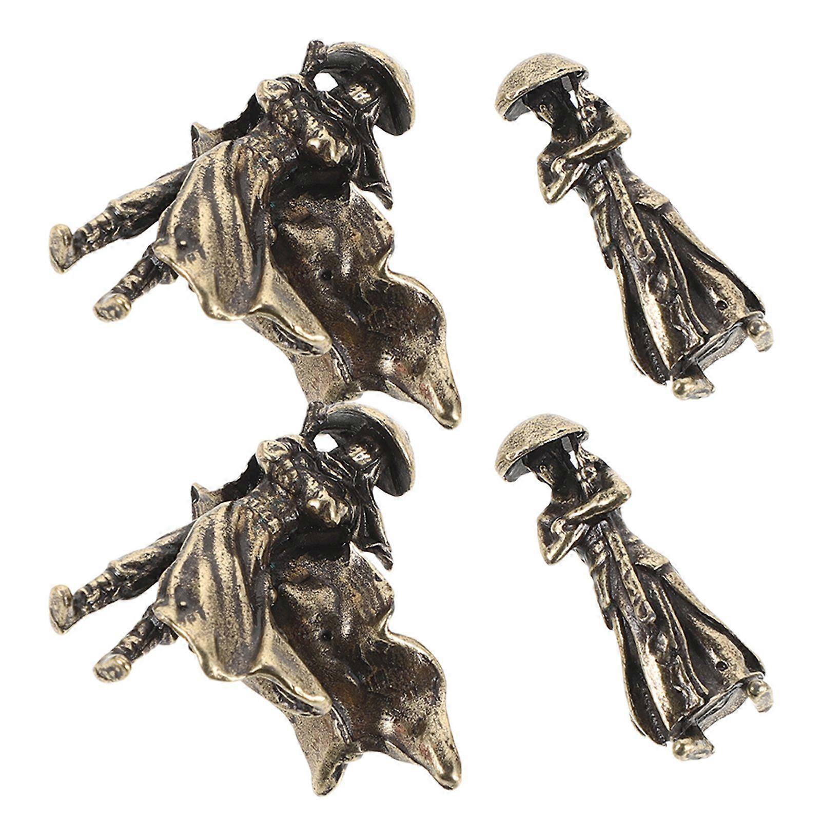 4pcs Ancient Chinese Figurines: Brass Miniatures Statues for Bonsai Decoration - Office Desk Display Retro Martial Arts Character Ornaments
