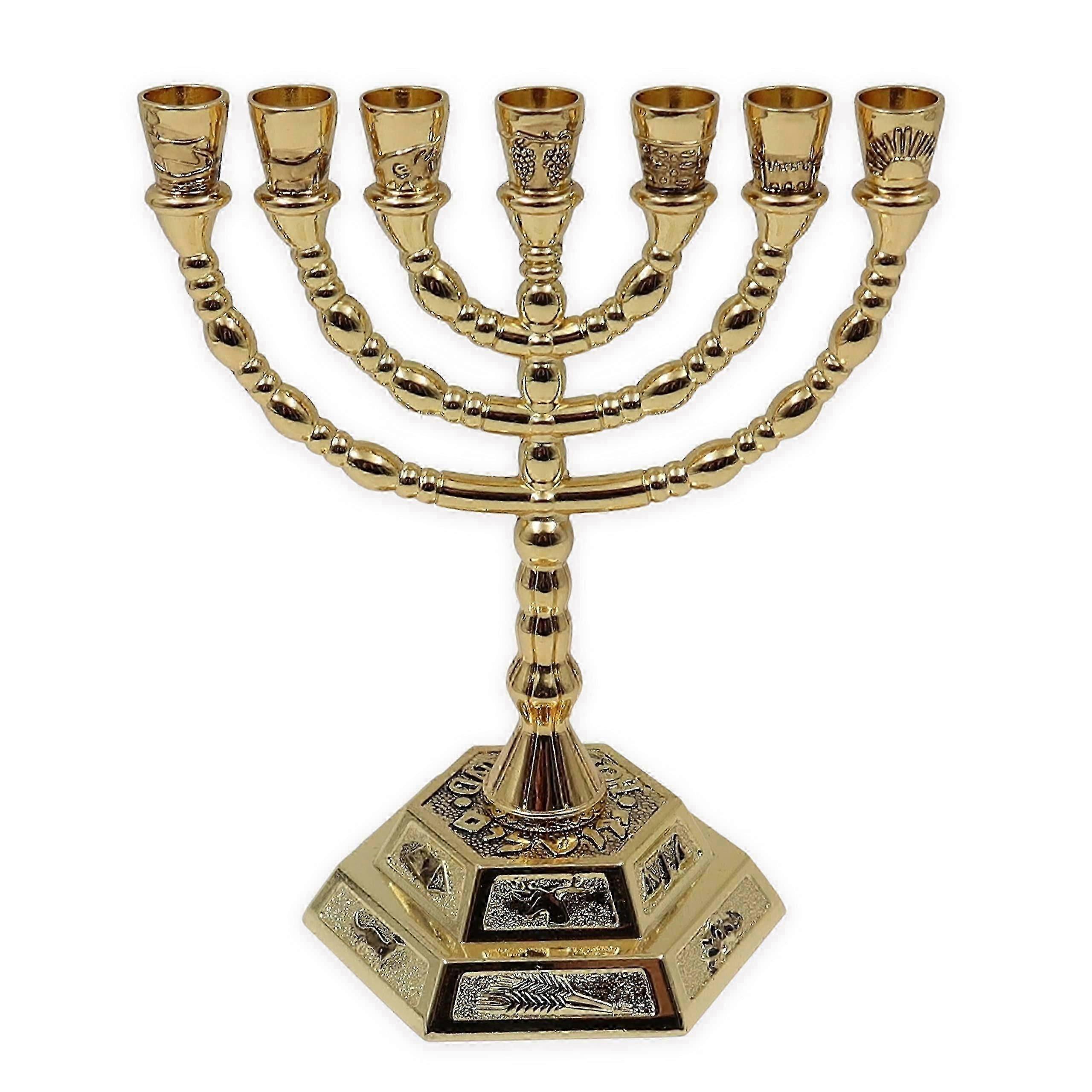 Traditional Jewish 7 Branch Candle Sticks Jerum Temple Candle Holder Menorah for 12 Tribes of Israel 6.6 Inches - XN