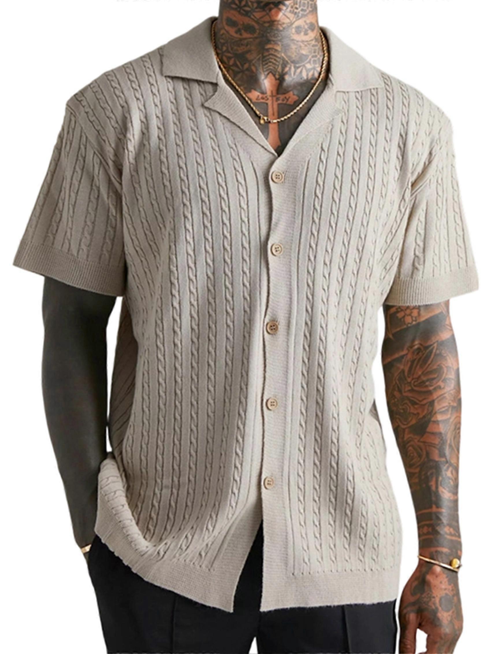 Men'S Knit Shirts Short Sleeve Button Down Shirt Fashion Casual Summer Beach Shirts Silver Gray XXL