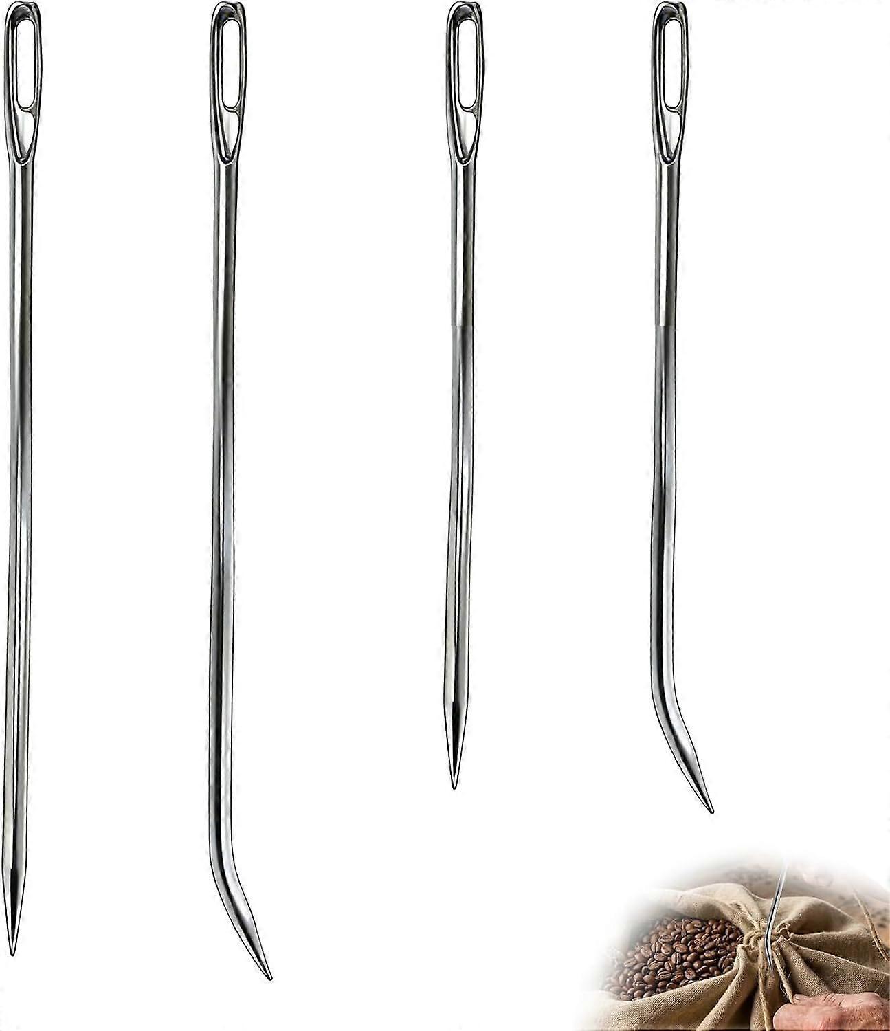 Four-piece sewing needle set, 17cm and 14.5cm large-eye sewing needles, straight and curved needles, easy to thread, suitable for leather, wallpaper,