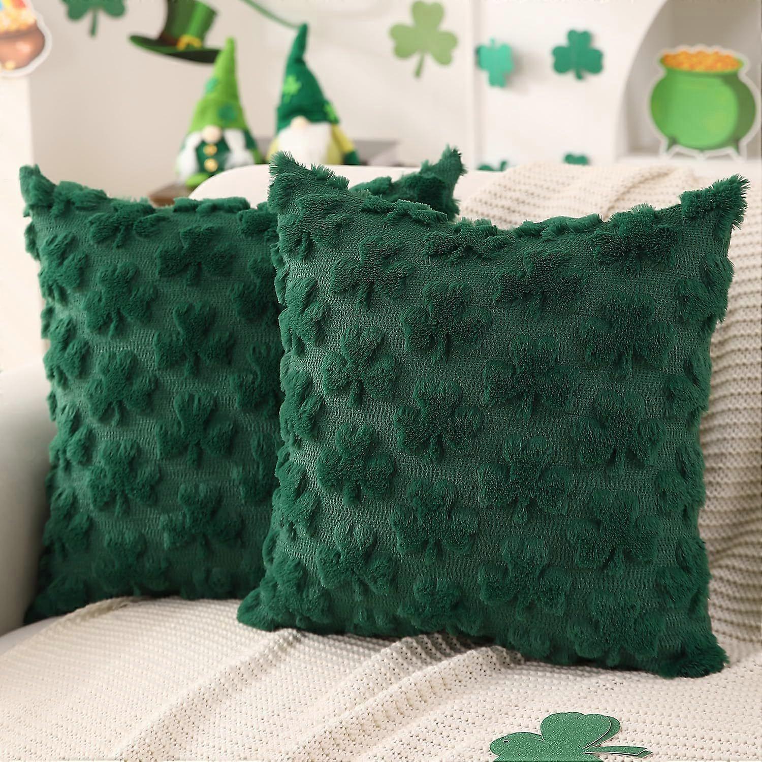 Plush Pillow Covers Soft Short Velvet Decorative Cushion Covers 45x45cm, Perfect for Sofa, Bedroom & St. Patrick's Day Decor