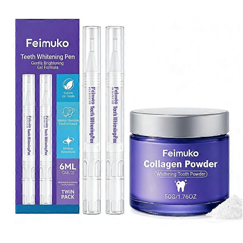 Collagen Powder + Teeth Whitening Pen, Collagen Powder for Teeth and Gums, Smile Strengthening, Purple Teeth Whitening Gel for Rapid Stain Removal