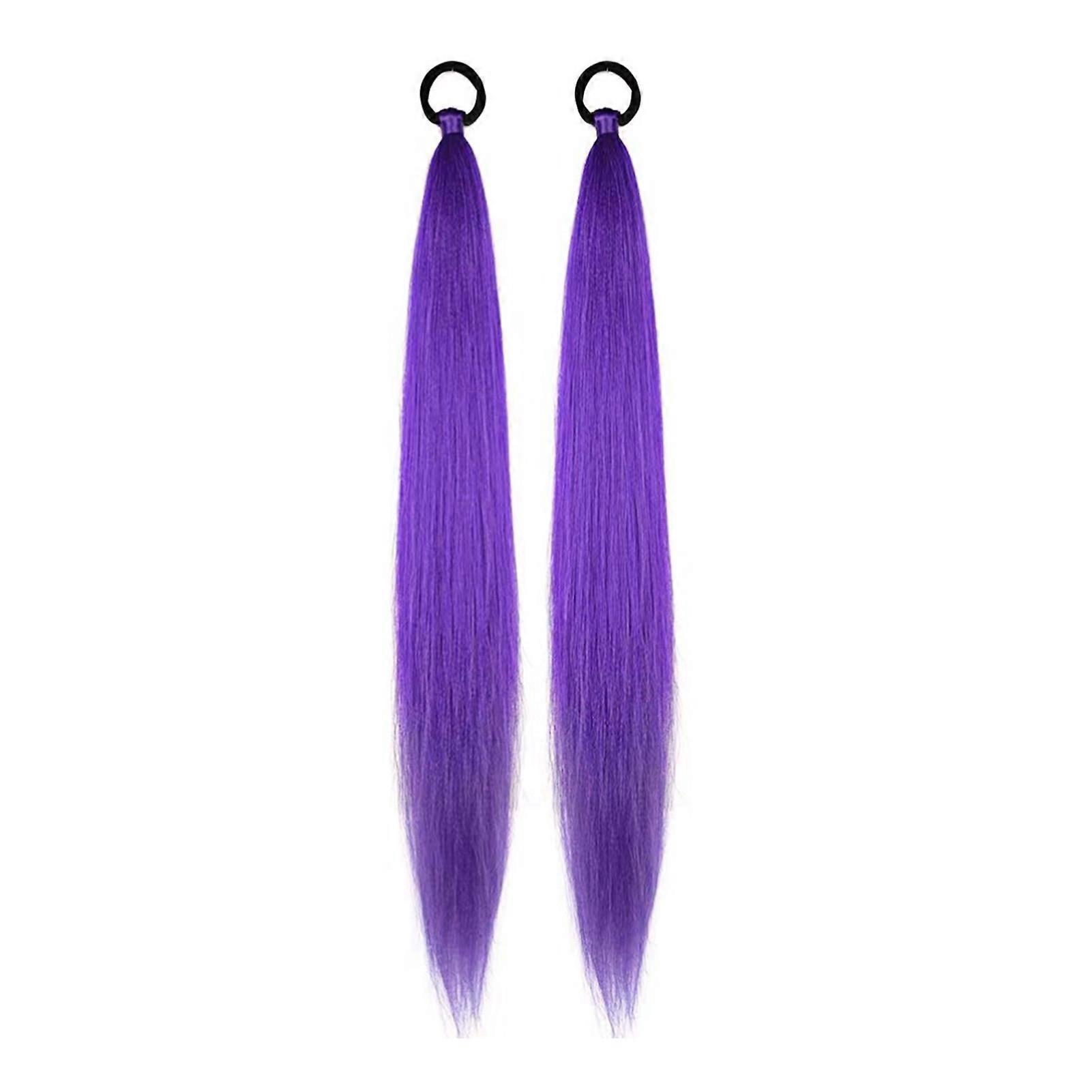 2Pcs 66CM Long Straight Ponytail Extension with Hair Tie Natural Looking Women Wrap Around Synthetic