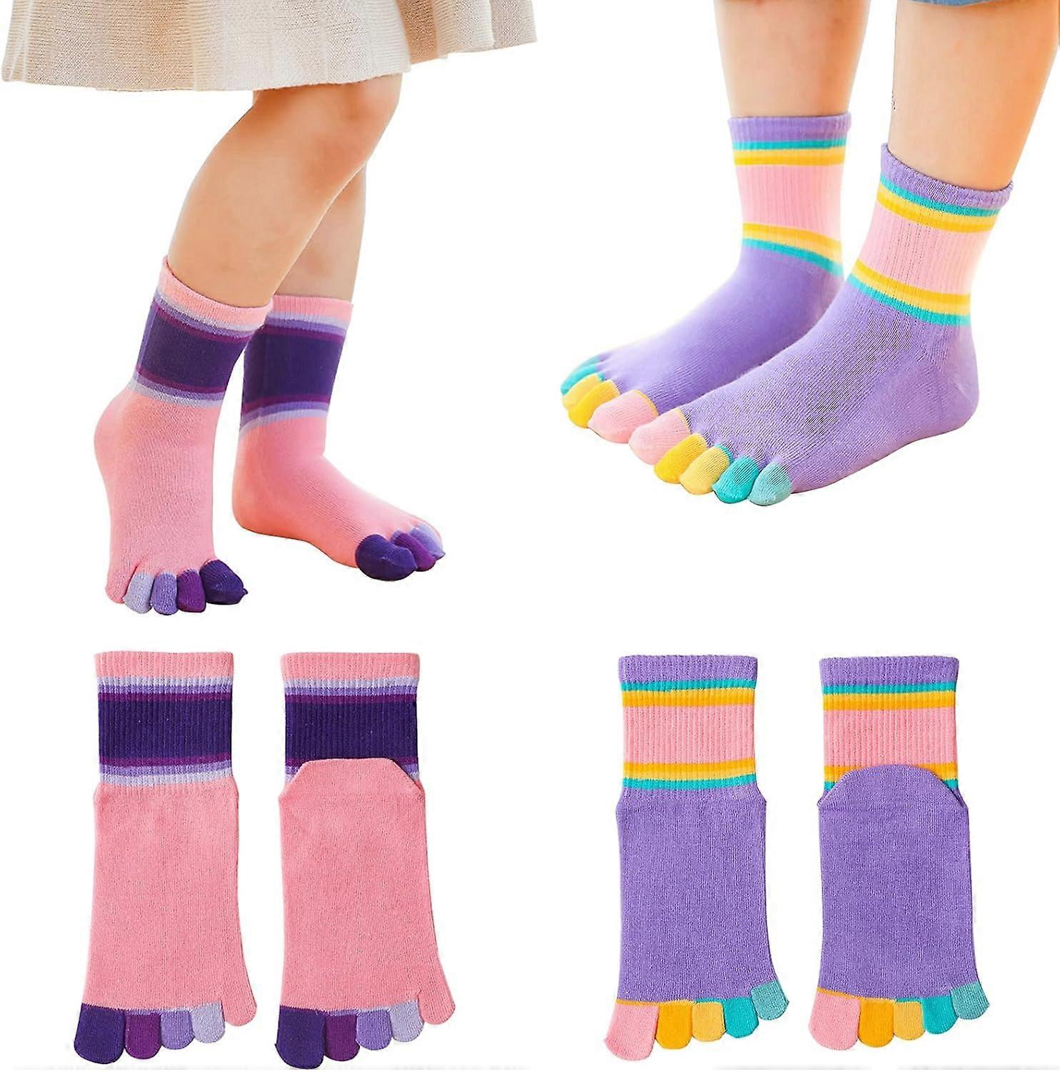 2 Pairs Cotton Five Finger Toe Socks Running Casual Dress Rainbow Stripe Socks for Boys Girls Kids 2-10 Years