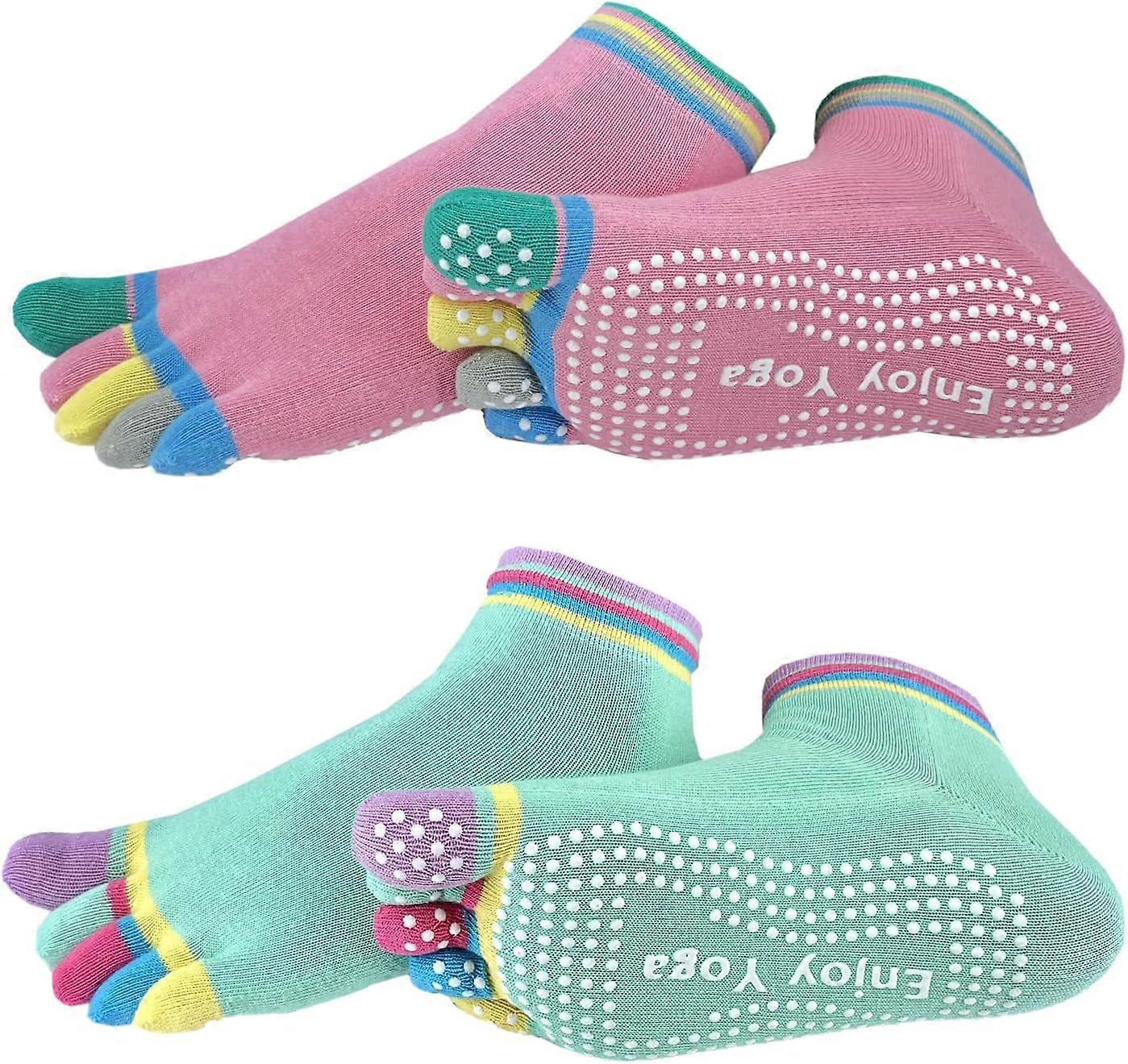 Five-Toed Design: Non-skid socks cover each of the five toes, providing full toe non-slip traction and warmth, you can move and stretch your toes at will; when you do yoga poses, it ensures that your toes are not slides in it.<br>Anti-Slip Design: Grippy socks for women have rubber anti-skid points on the bottom, this design increases friction, ensures anti-slip and provides secure foot placement during all barefoot fitness exercises, ideal for tile floors Even exercise on smooth surfaces like carpets.<br>Unique & Colorful Design: Our color range of non slip socks for women is available in pink and mint green (pack of 2). Very cute and fun yoga socks for women and girls!<br>Comfort & Hygiene: Grip socks are an excellent choice for keeping your feet clean, healthy and hygienic. Made of 77% Organic Cotton, 19% Polyester and 4% Other Fibers to keep your feet comfortable during any sport.<br>Versatile: Keeps each toe separate for moisture absorption. Not only suitable for yoga, Bikram, Pilates, Barre, Dance, Gym or other sports, but also suitable for home, travel, studio and hospital use, great for large and bulky hospital socks substitute!