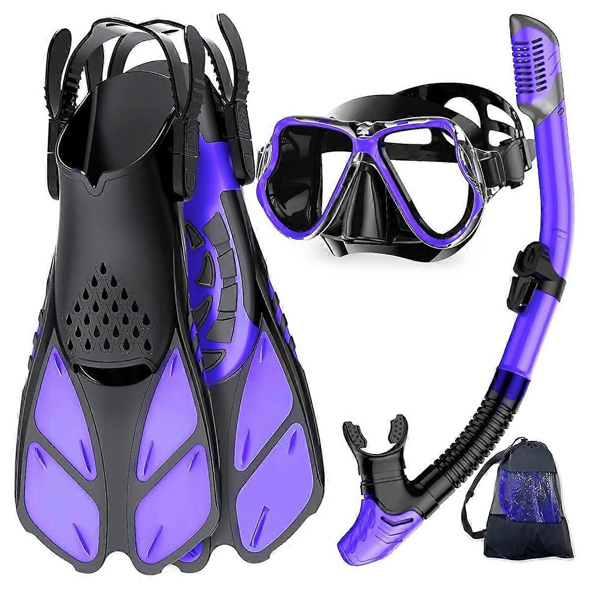 Adult Snorkeling Set with Fins, Adult Diving Mask with Snorkel and Adjustable Fins