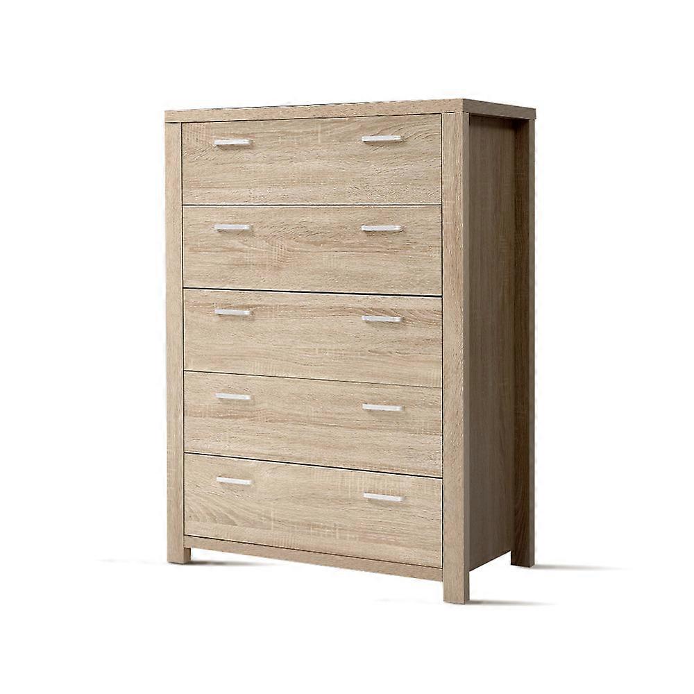 Part Of The Maxi Series With A Contemporary Simple-Natural Design 30 Mm Thick Frame Crafted From 15 Mm Particle Board For Durability Five Spacious Drawers Providing Ample Storage For Personal Essentials Smooth Coated Metal Drawer Runners For Easy And Quiet Opening Elegant Twin Handles For Convenient Access To Drawers Anti-Scratch Floor Protectors To Protect Your Floors Easy To Clean And Maintain Simple Assembly For Quick Setup Specifications: