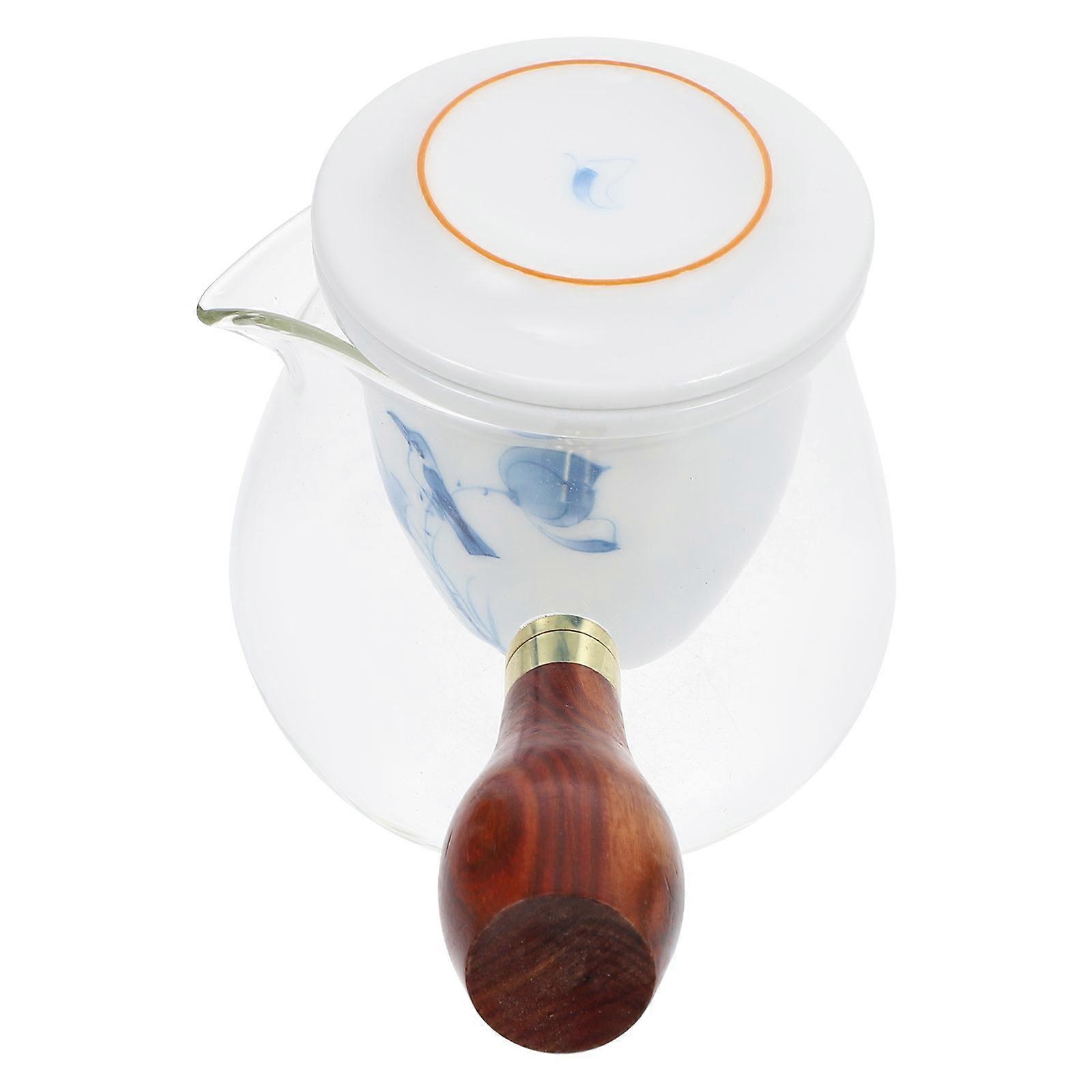 Hand Painting Blue Glass Teapot with Wooden Handle for Home Use 1Set