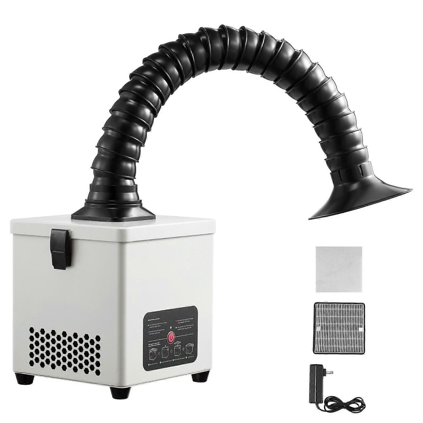 *KeyFeatures *Efficient Suction Power: Equipped with a 43W brushless motor, this solder fume extractor delivers strong suction of up to 180 m³/h. It effectively captures solder smoke, fine particles, and dust, making your soldering tasks more comfortable *3-Stage Filtration System: Built with a triple-layer filtration system - primary quartz cotton + H11 filter & activated carbon cloth 2-in-1 filter, this soldering smoke absorber efficiently traps particles and soldering smoke for cleaner air (Filter comes pre-installed; replacement filters can be purchased as needed) *Adjustable Suction, Easy Control: Three airflow levels - up to 180 m³/h. Easily adjust the suction to match different soldering tasks and smoke levels, ensuring smoother, more stable, and more efficient operation *360° Flexible Fume Hose: The 1.8ft exhaust pipe can rotate 360° for flexible adjustment of angles and directions to suit different work positions. Paired with the large exhaust hood to capture and direct fumes away more precisely and efficiently *Compact & Sturdy: Our fume absorber extractor features a metal body for enhanced durability, and four anti-slip rubber feet keep it stable on your desktop. The compact design makes it easy to carry or store —ideal for home studios and DIY workspaces ******************************************************************************************************* *Specifications Item Model Number: DX50 Power: 43W Body Material: Sheet Metal Filteration Layers: 3-Layer Airflow: 106 CFM / 180 m³/h Motor Type: Brushless Motor Net Weight: 7 lbs / 3.35 kg Product Size: 8 x 7 x 9 inch / 205 x 188 x 225 mm ******************************************************************************************************* *Pakcage Content 4 x Primary Filter Cartridges (1 pre-installed, total of 5) 1 x Power Adapter 1 x Exhaust Hose (1.8ft) 1 x Exhaust Hood 1 x User Manual
