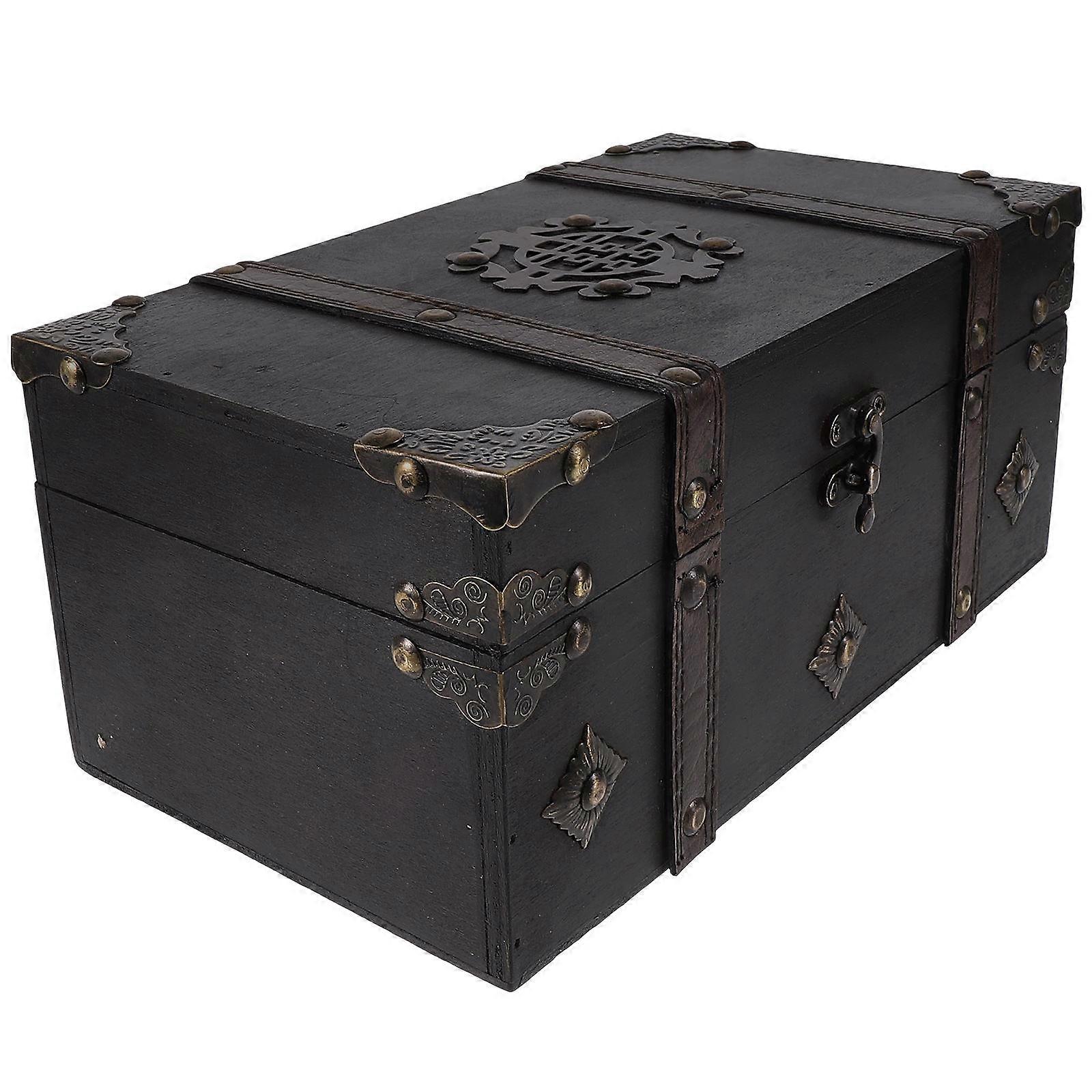 Vintage Jewelry Box for Sundries Storage Black Wooden Trinket Box