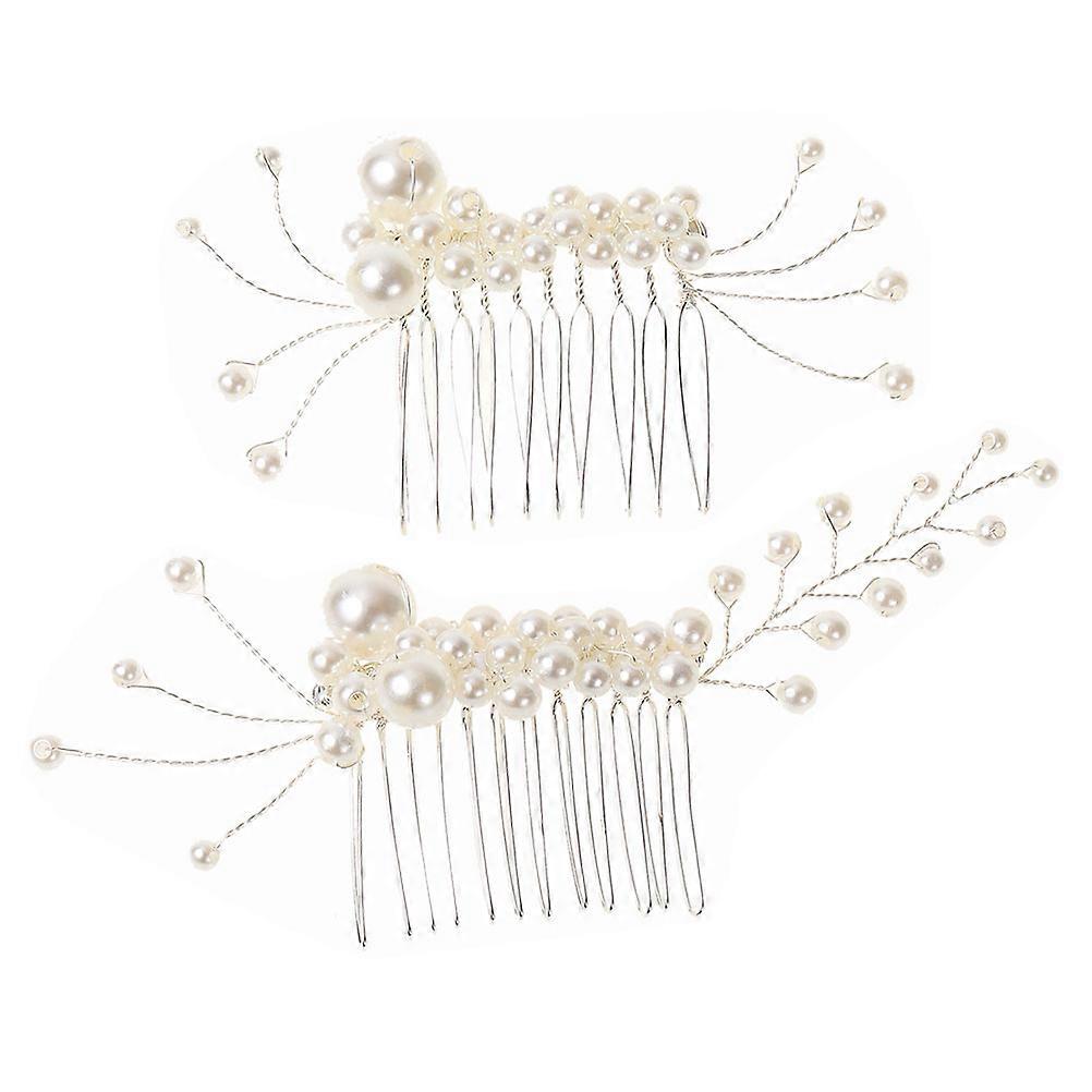 Pearl Hair Comb Wedding Hair Comb for Bridal 2Pcs Silver Finish