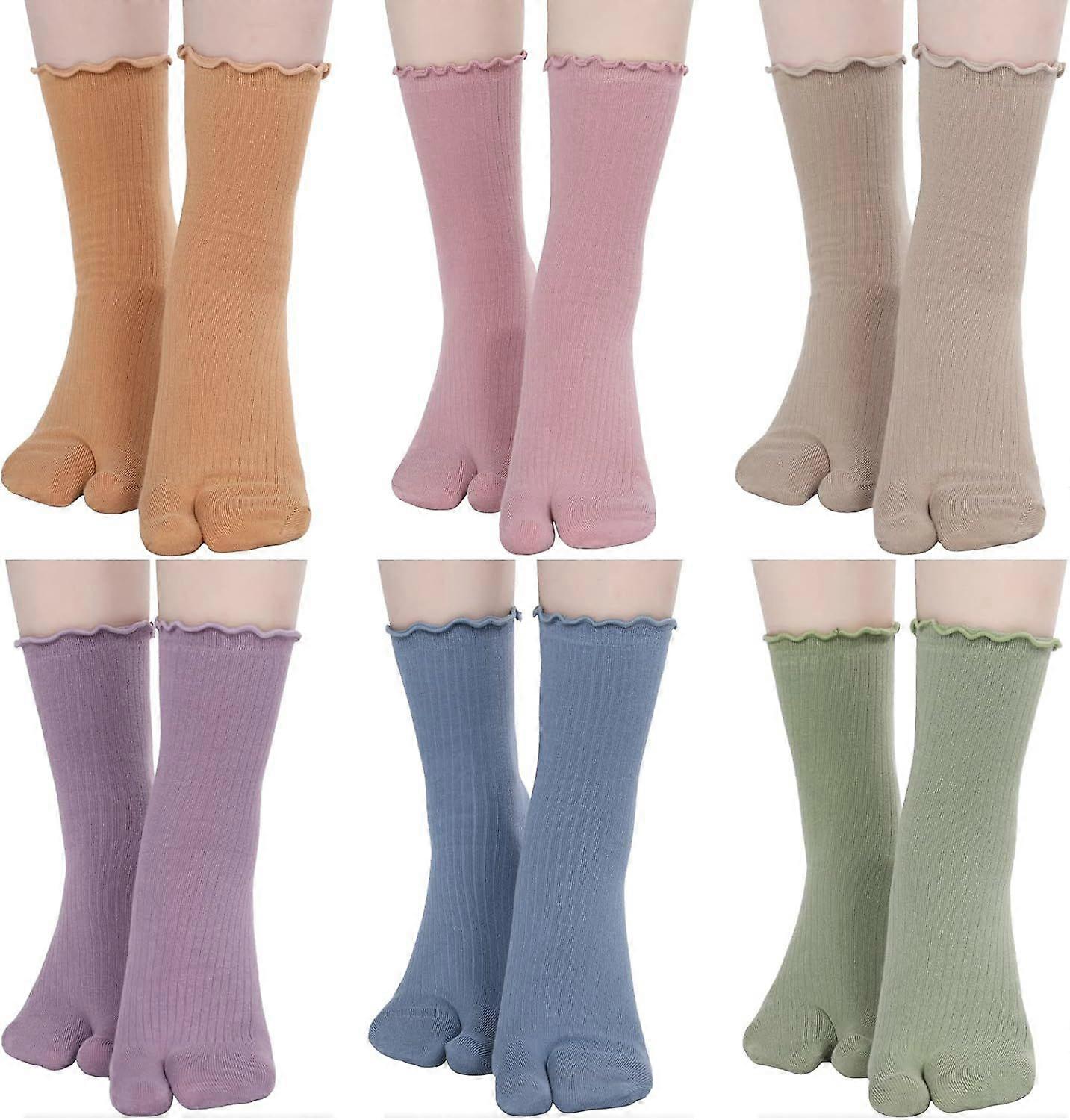 6 Pairs Tabi Socks Women Split Toe Flip Flop Frilly Socks Cotton Japanese Sandal