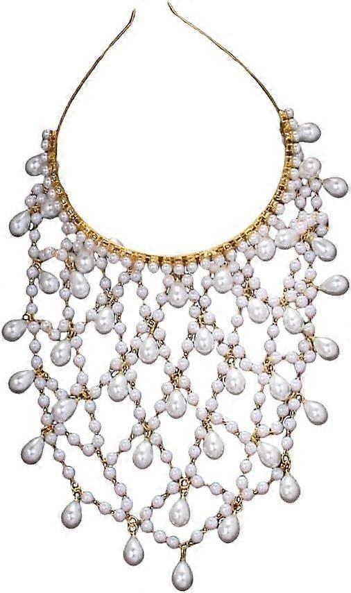 Vintage Pearl Cascade Bridal Hair Chain, Bohemian Mesh Headband, White Pearl