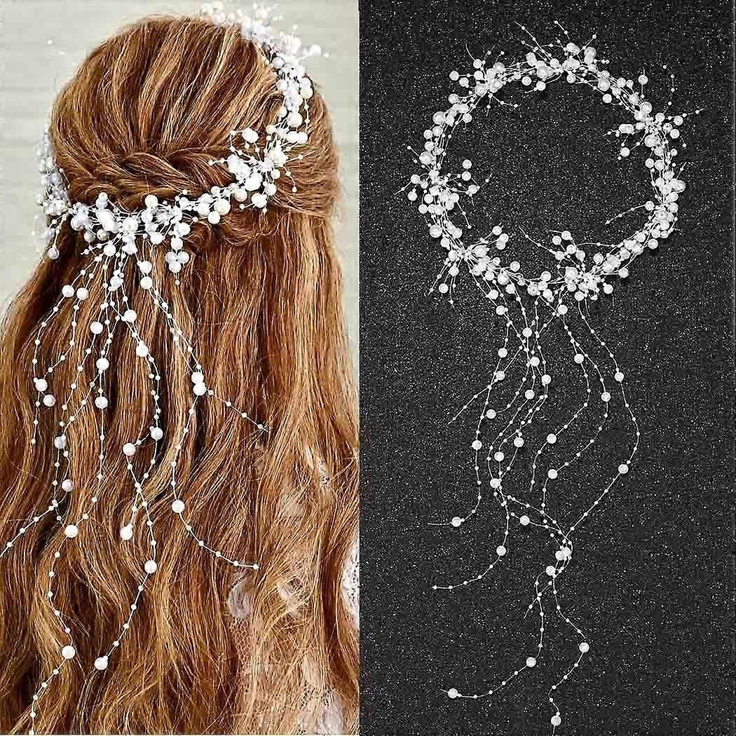 Pearl Bridal Headband Silver Pearl Tassel Wedding Hair Accessories Prom Headpiece for Wome