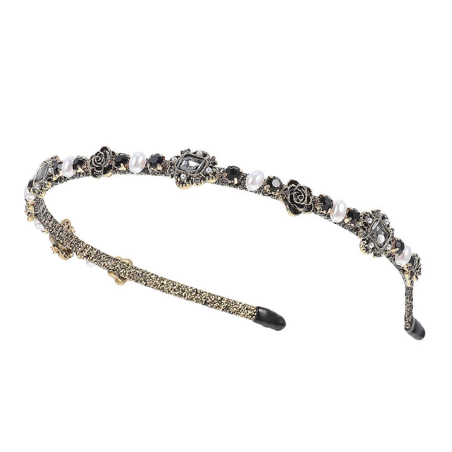 Vintage Rhinestone Wedding Hairband with Gold Flower Headband Decor for Women