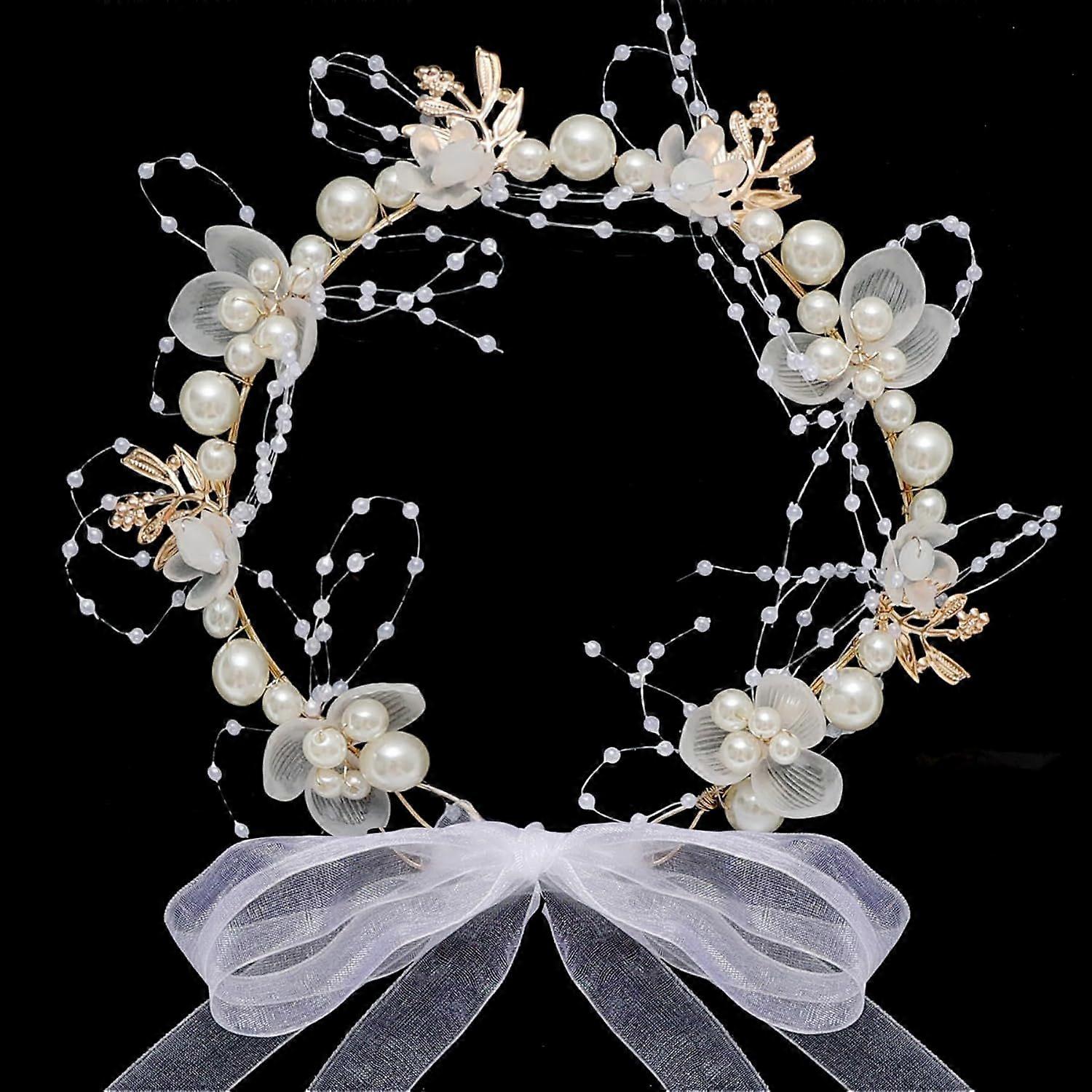Flower Girls Headband: The wedding headband is made of high-quality pearls and crystals, and is handmade, very exquisite, making you full of charm. This headdress is adorned with white flowers and pearls. These flowers are lifelike, while crystal rhinestone pearls are like scattered stars, sparkling with brilliant light, adding a noble and elegant temperament to the entire headwear. Size of The Wedding Flower Girl Headpiece: Total length of the headpiece is 14.2in / 36cm. Flower girls headpiece is suitable for 8~15 years old girls. We provide you with 2pcs hairpins and ribbons for fixing. it is equipped with adjustable ribbons that can be adjusted according to different head circumference, ensuring that every girl can find the most suitable size for themselves. Applicable Occasions: Whether attending weddings, girls' first holy communion, photography, parties, performances, princess-themed parties, birthday or other occasions, this headpiece can add a unique charm to girls and women. It is not only a headband, but also a precious gift that can record the beautiful moments of girls growing up. Comfortable: The design of this pearl headband bridal headwear also fully considers comfort and practicality. It uses lightweight materials, so wearing it on the head won't feel heavy or uncomfortable. This floral headdress can be paired with princess dresses, ball dresses, or other formal attire to create an elegant and complete look, making little girls feel confident when wearing it. Floral girl headpiece pearl is made into a flower-like shape, golden alloy leaves and white flowers,very elegant, it shines in an instant, making you charming. Suitable as a headdress for little flower children at weddings, adding a princess like dreamy atmosphere to little girls.. Elegant and fashionable hair accessories, suitable for women of different ages.