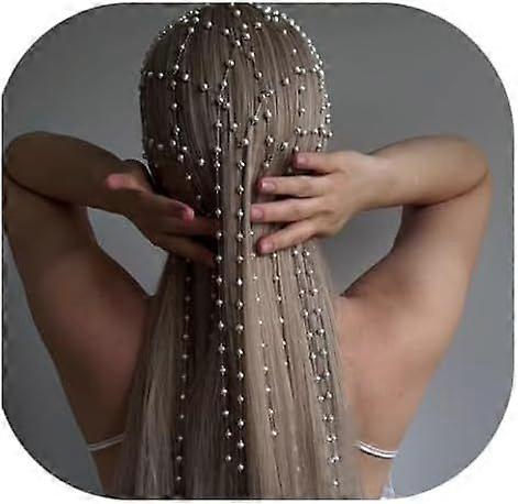 Long Tassel Pearl Headband Chain for Women Wedding Bridal Pearl Hair Chain