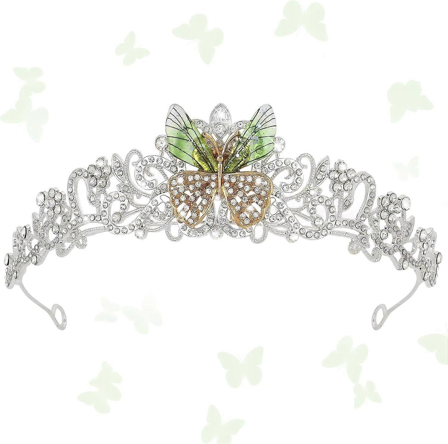 ELEGANT DESIGN: Stunning butterfly crown tiara featuring green butterflies adorned with iridescent rhinestones and crystal-like accents PREMIUM MATERIALS: Silver-toned metal framework decorated with sparkling rhinestones and detailed butterfly ornaments in dreamy pastel hues PERFECT SIZE - Length 6.1 inches, Height 1.77 inches; No size trouble + Comfortable wearing. You can use clips or ribbons to fix the crown on your head (The package includes four clips). VERSATILE OCCASIONS: Perfect accessory for special events including proms, weddings, pageants, birthdays, costume parties, and other formal celebrations PERFECT GIFT - A wonderful gift for your famlily, friends and anyone you loved in your life, and for yourself. Commemorate every memorable day.