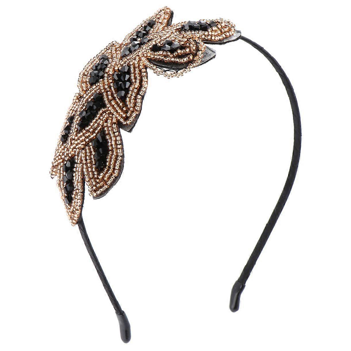 Retro Rhinestone Crystal Headband Vintage Beaded Leaf Hair Hoop Shiny Bridal