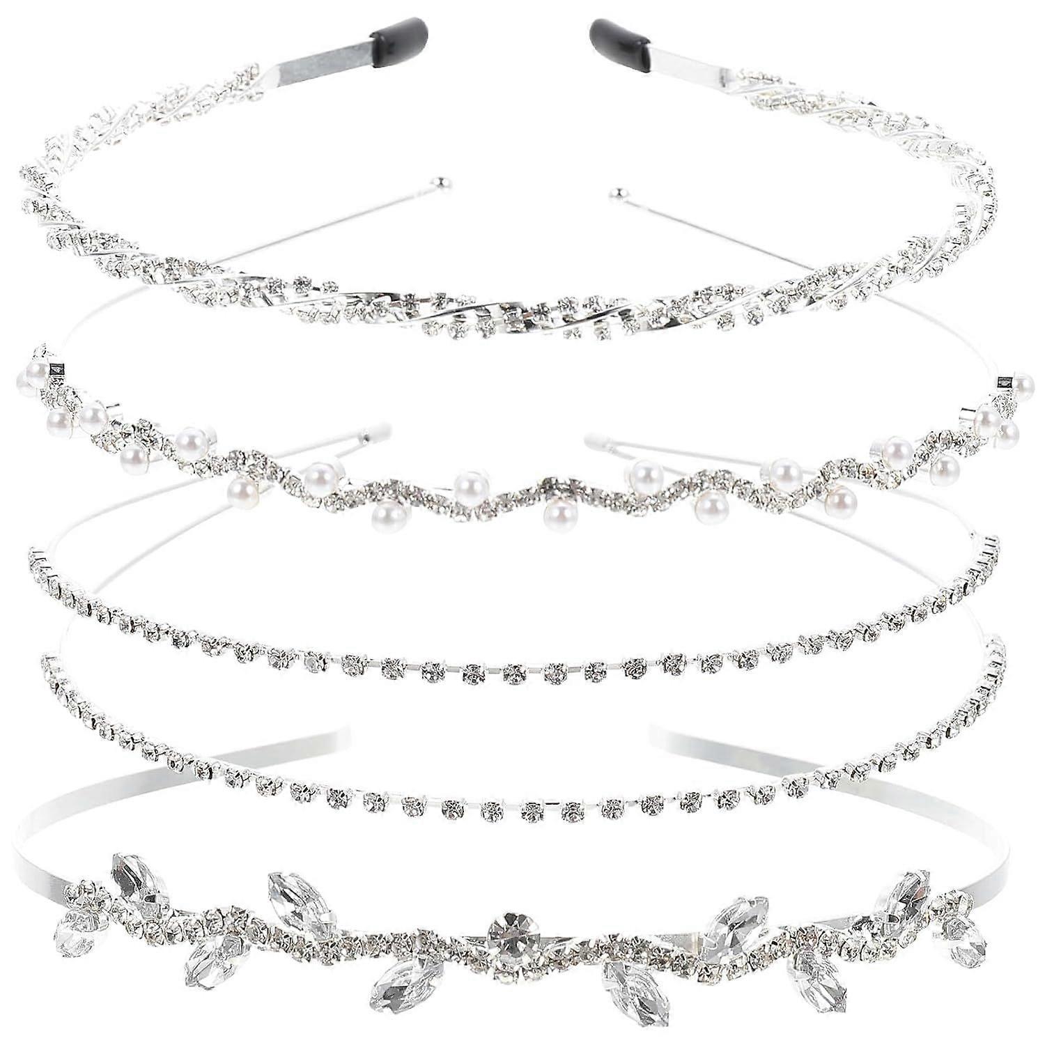 Rhinestone Pearl Headband Set 4pcs Double Layer Decorative Hairbands for Brides