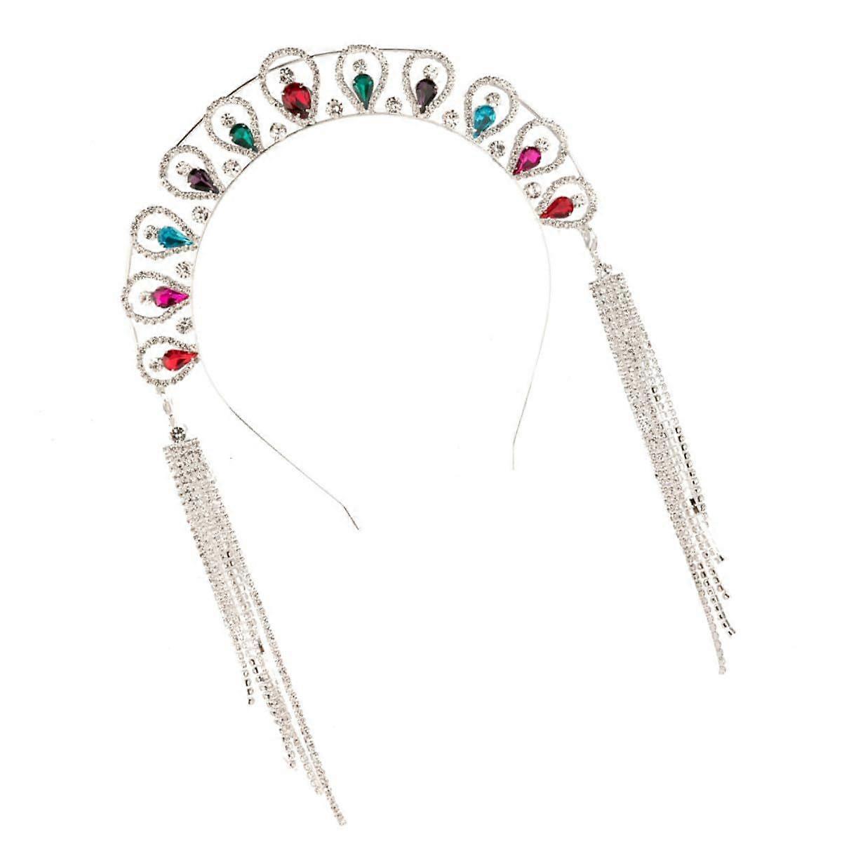 Colorful Rhinestone Tassel Headband for Brides, Bridal Hair Accessories Wedding