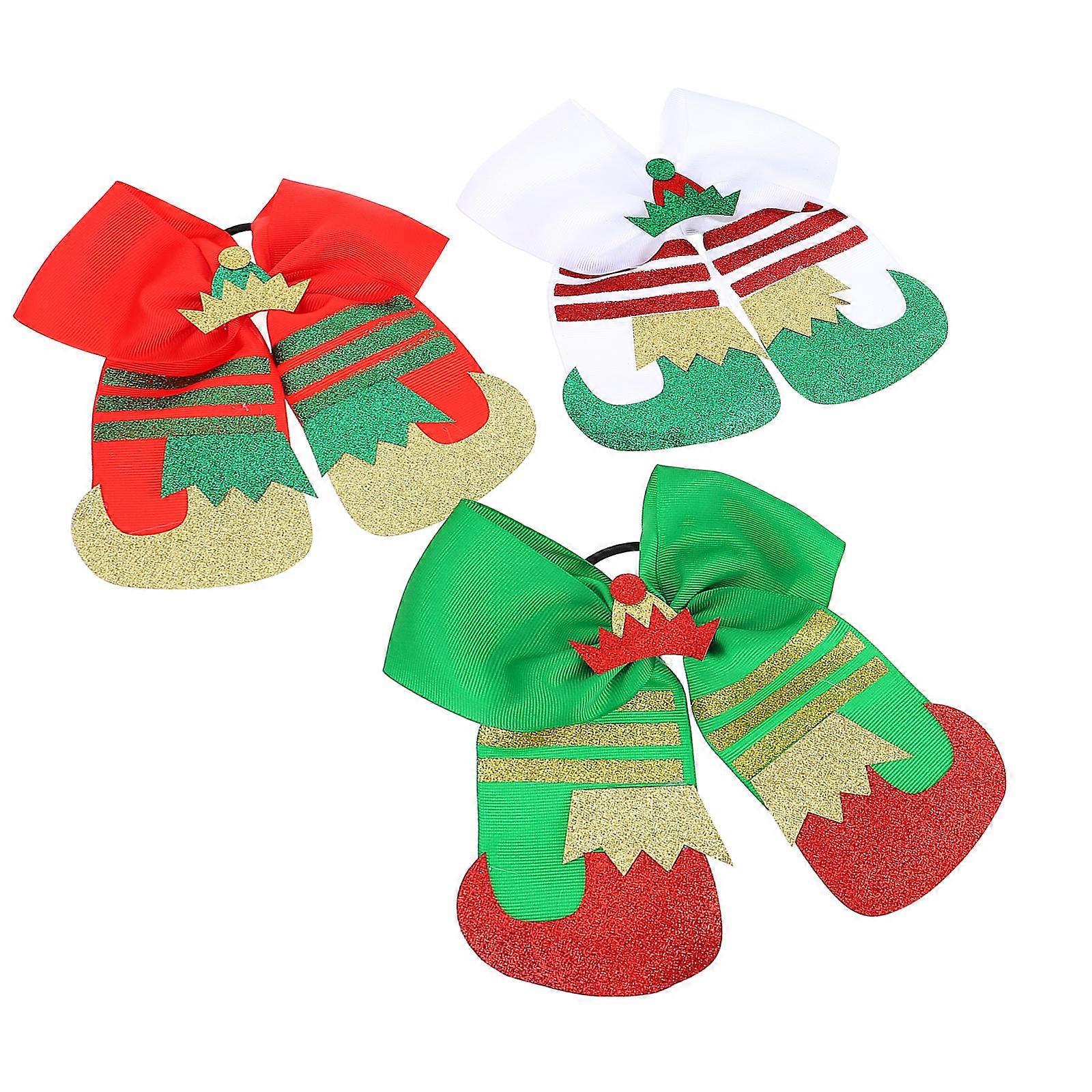Christmas Hair Rope Bowknot Hair Ties for Kids Girls 3Pcs Festive Ponytail Holders